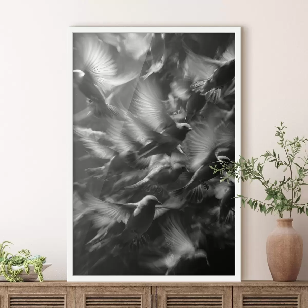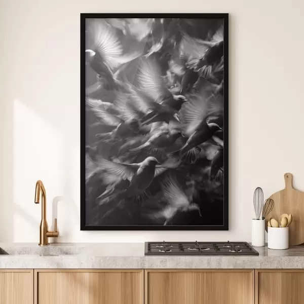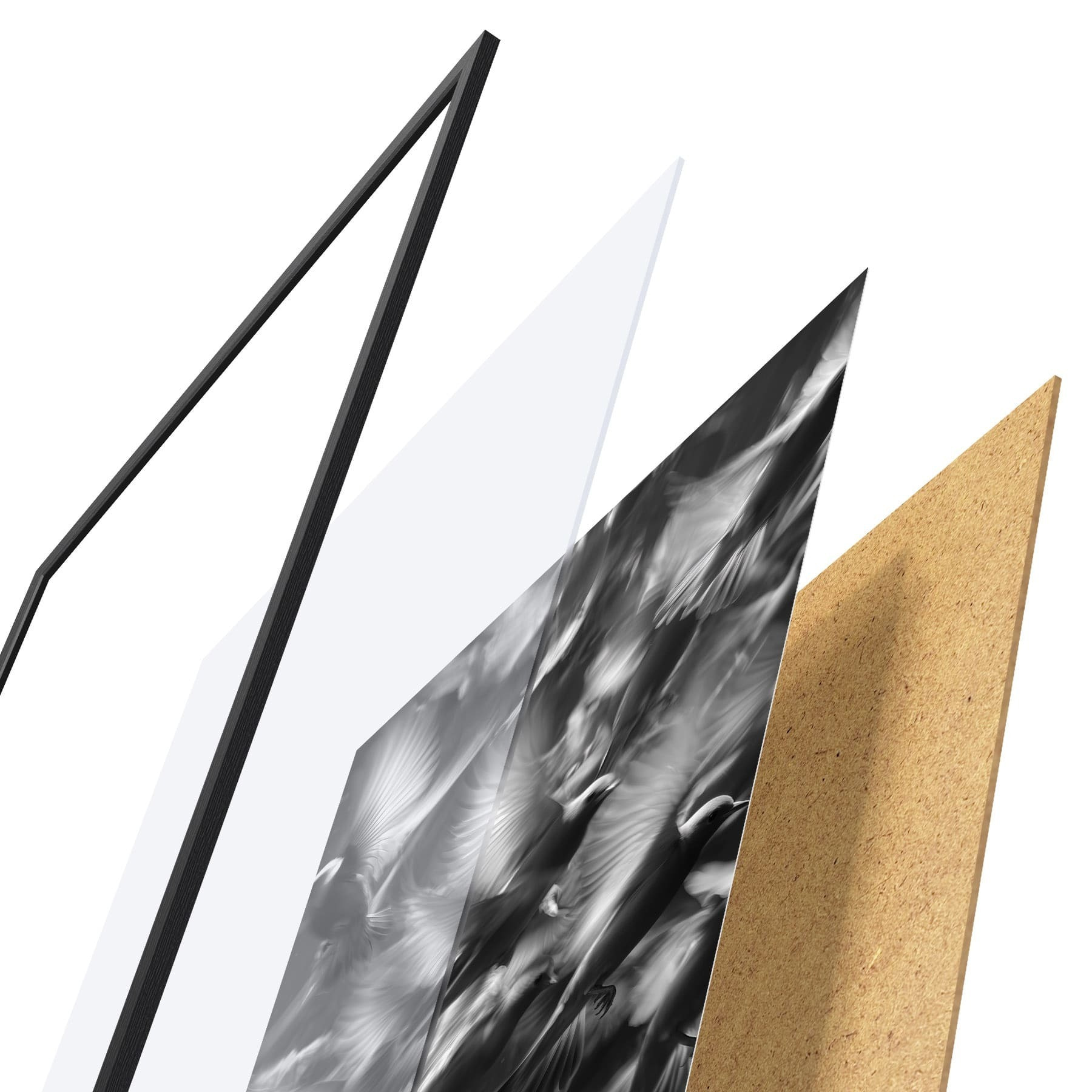 A poszter keretből, plexiből, nyomtatott képből és forgácslap hátlapból áll. A poszter a hátoldalon található rögzítőknek köszönhetően azonnal felakasztható a falra.