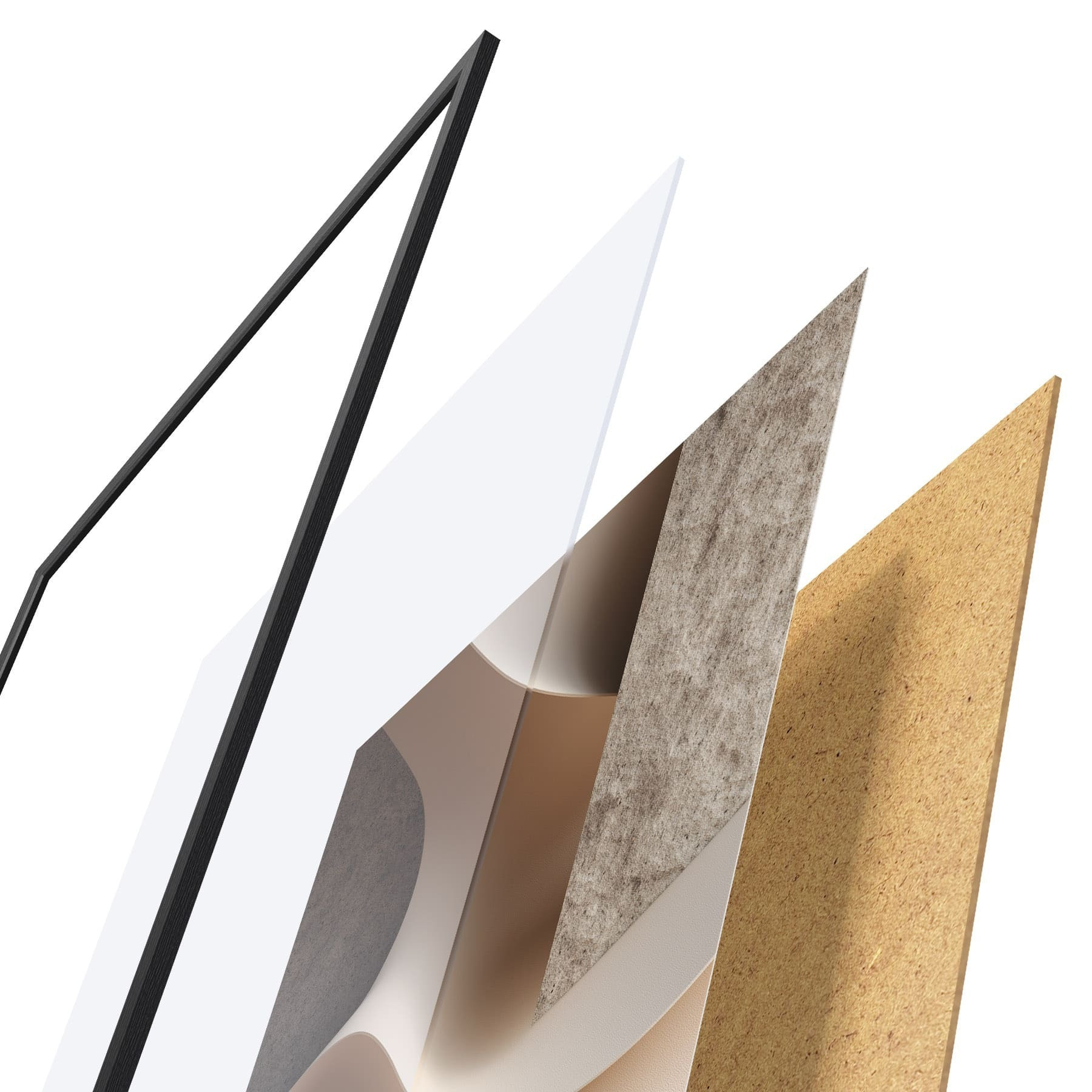 A poszter keretből, plexiből, nyomtatott képből és forgácslap hátlapból áll. A poszter a hátoldalon található rögzítőknek köszönhetően azonnal felakasztható a falra.