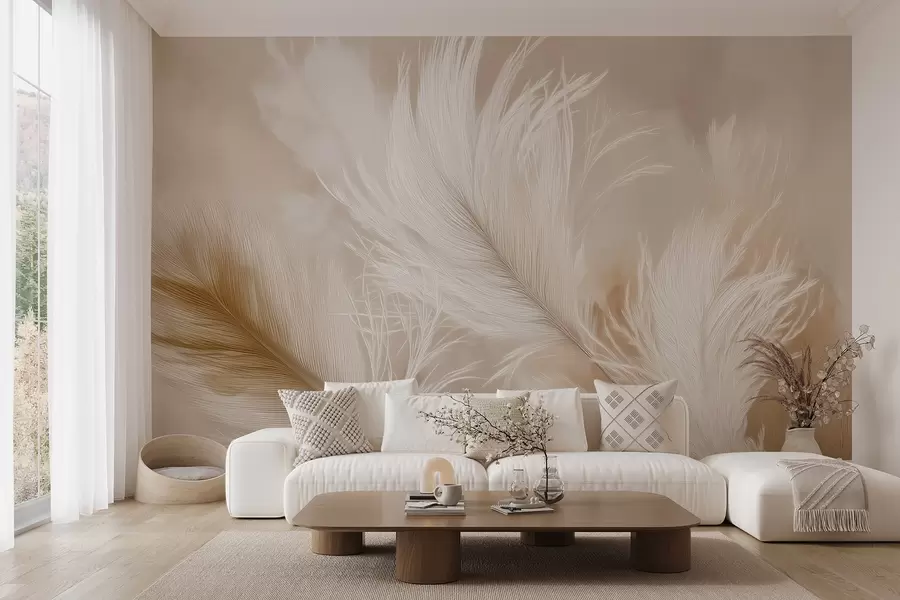 Fotótapéta Könnyű tollak meleg bézs és fehér tónusokban