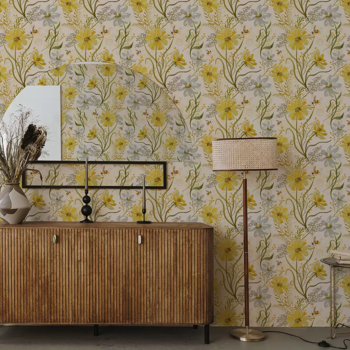 Tapéta Élénk virágos kompozíció sárga színben Nr. a00045