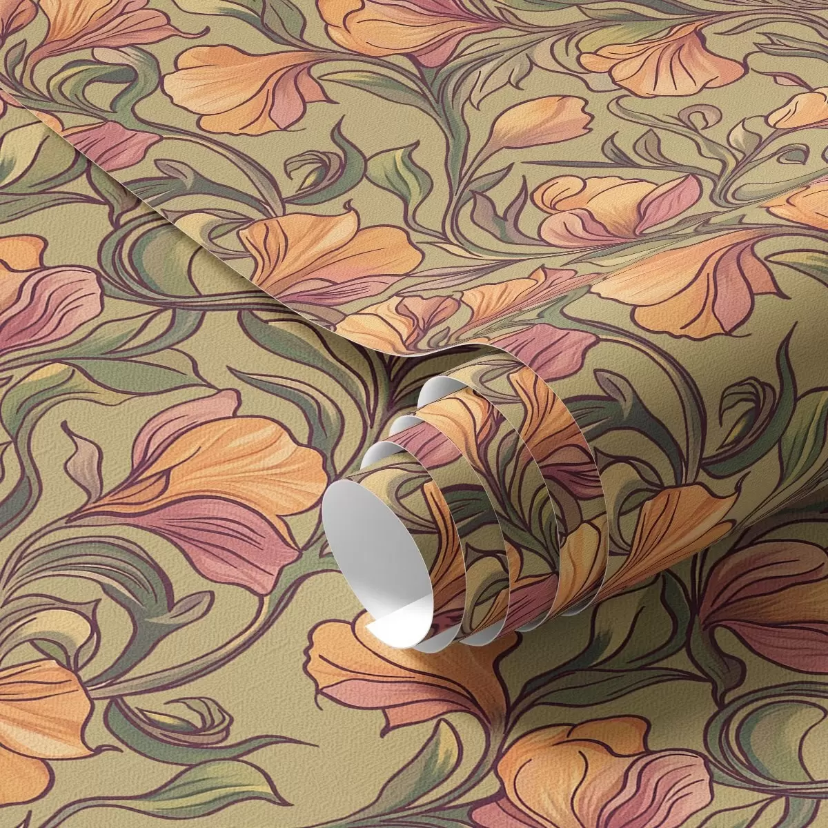 Tapéta Fényes csavart szárak levelekkel és virágokkal Nr. a00074