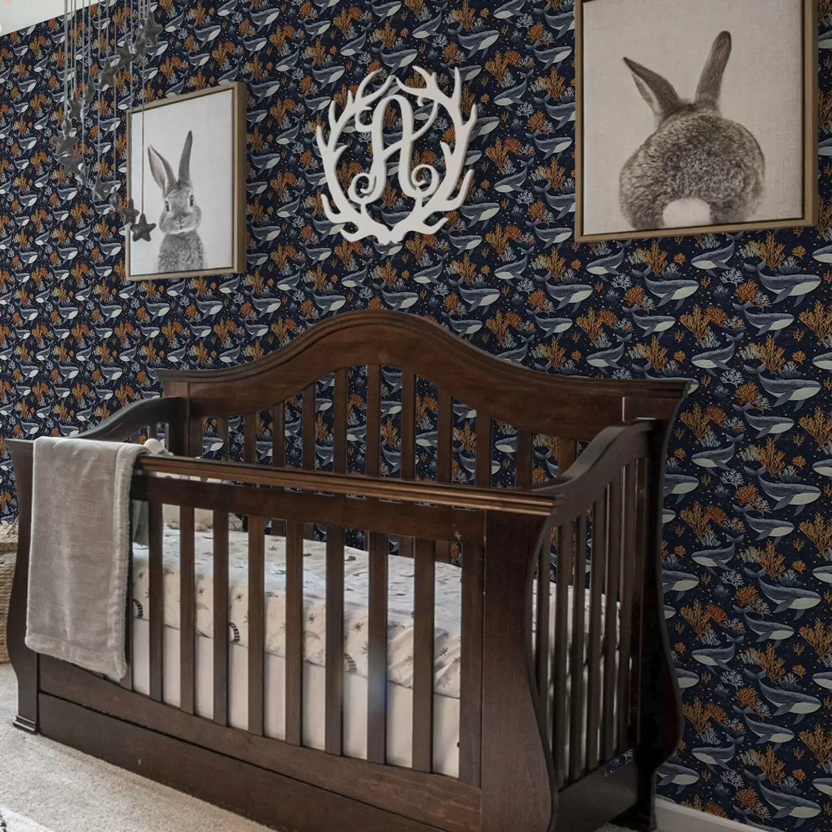 Tapéta Tengeri bálnák és korallok sötét háttéren Nr. a00116