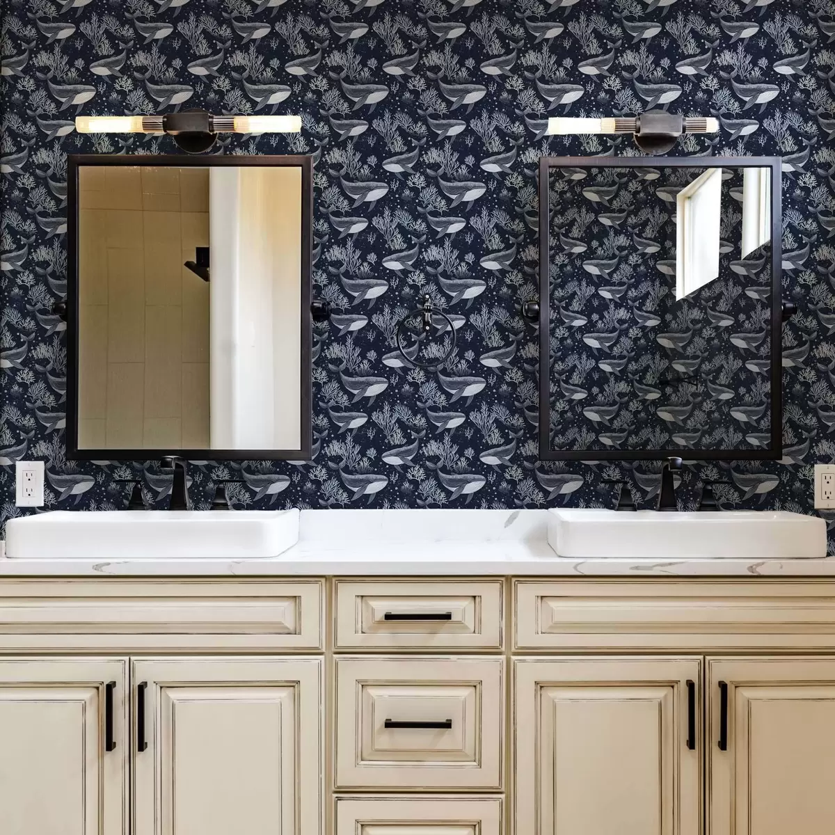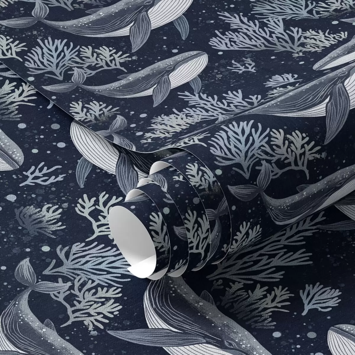 Tapéta Bálnák és korallok sötétkék háttéren Nr. a00116v1