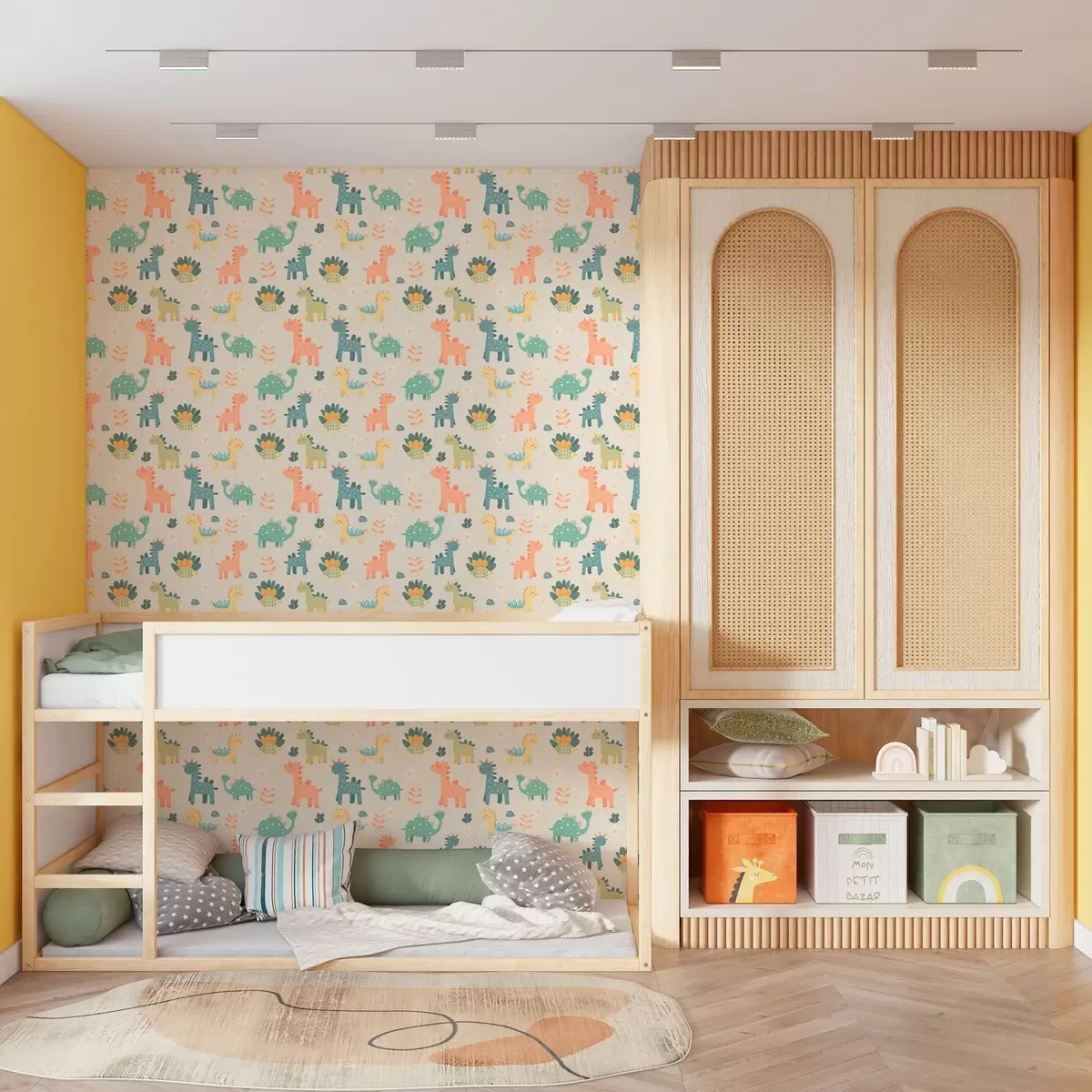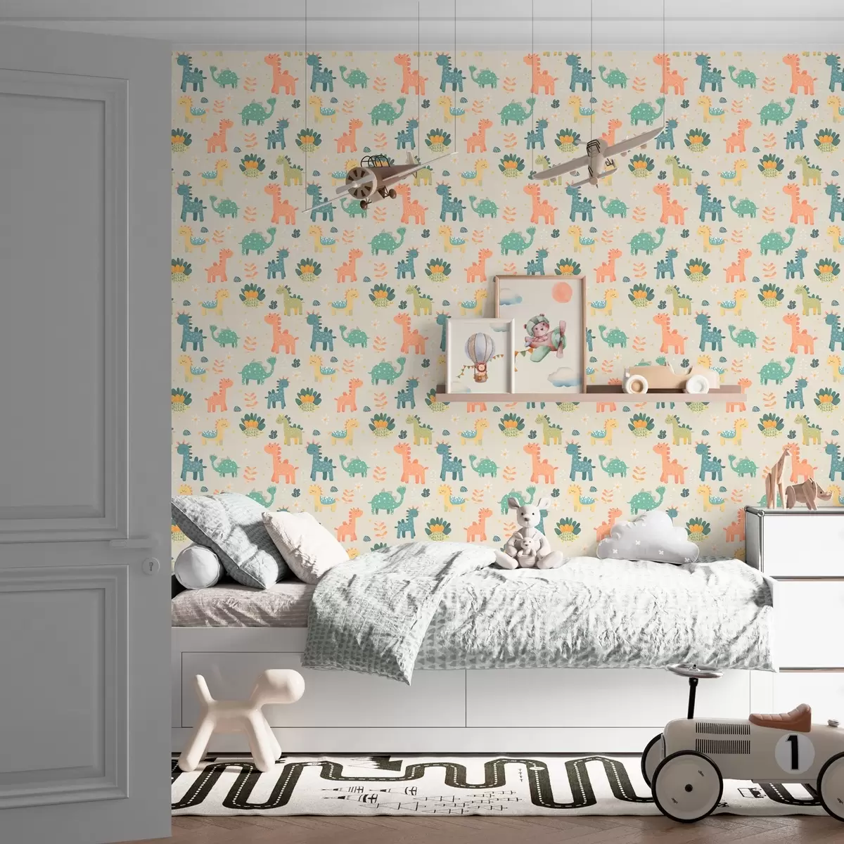Tapéta Gyermek dinoszauruszok pasztell színekben világos háttérrel Nr. a00125