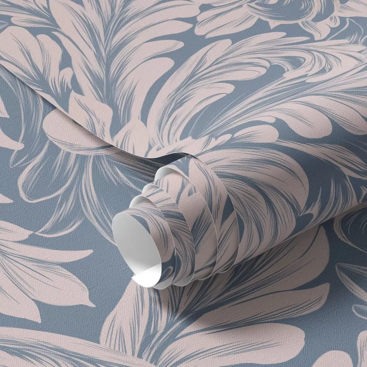 Tapéta Növényi fürtök krémszínű árnyalatokban kék és szürke háttéren Nr. a00135v2