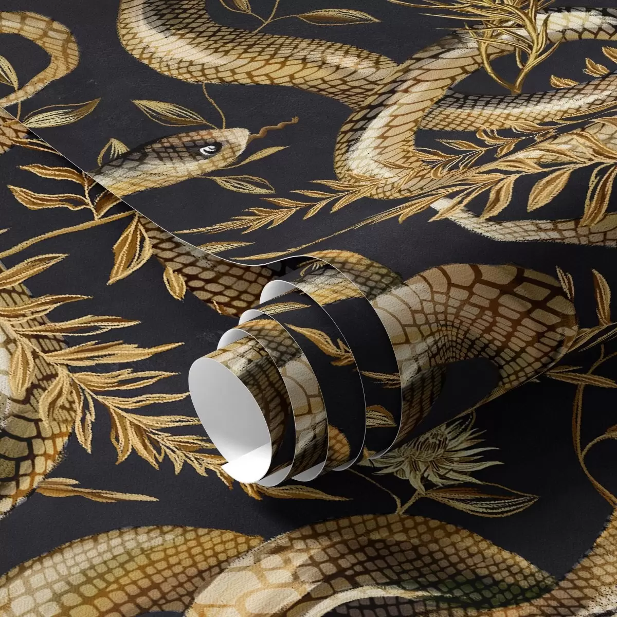 Tapéta Kígyók és virágok sötét háttéren Nr. a00158