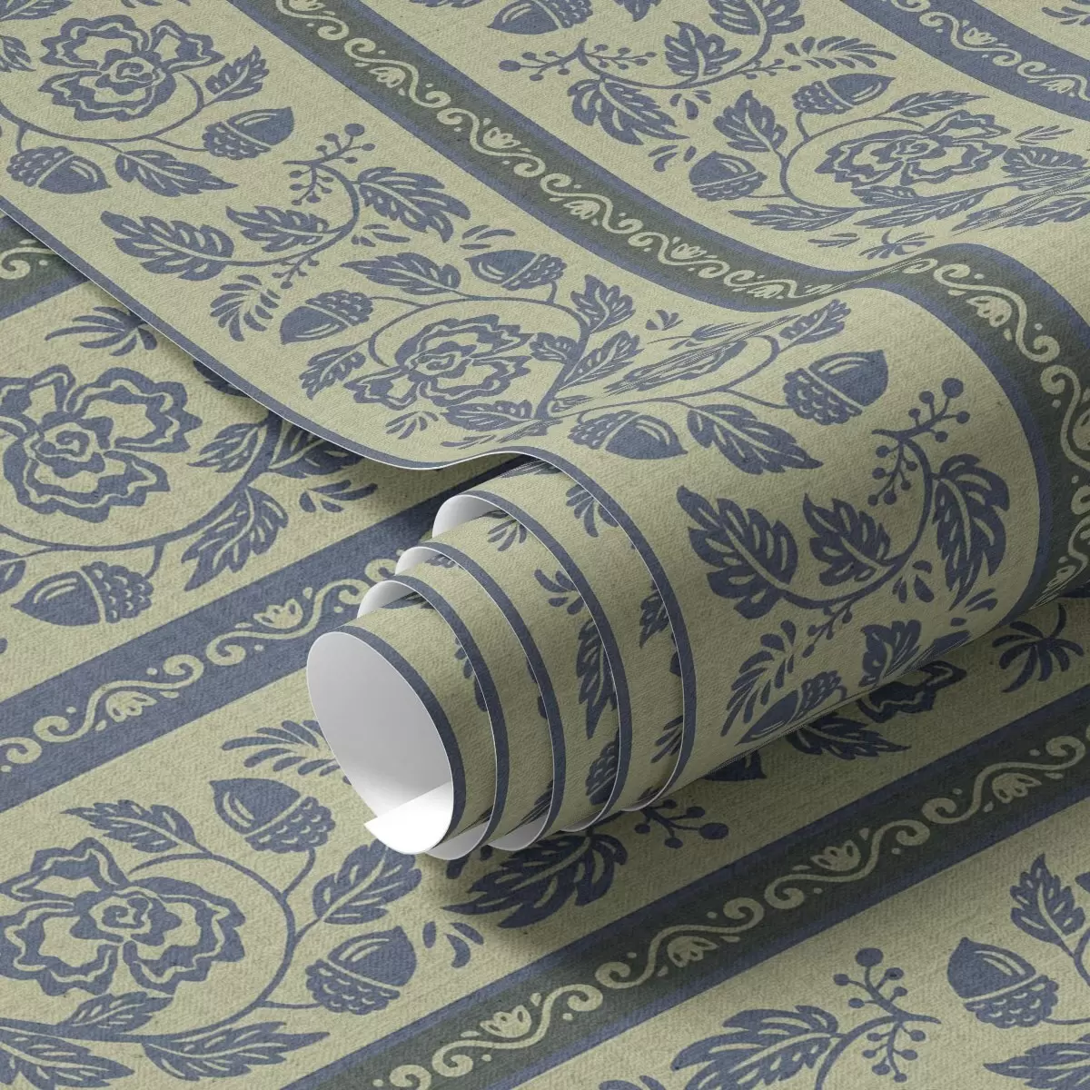 Tapéta Vintage kék dísz virágokkal és makkokkal Nr. a00181v1