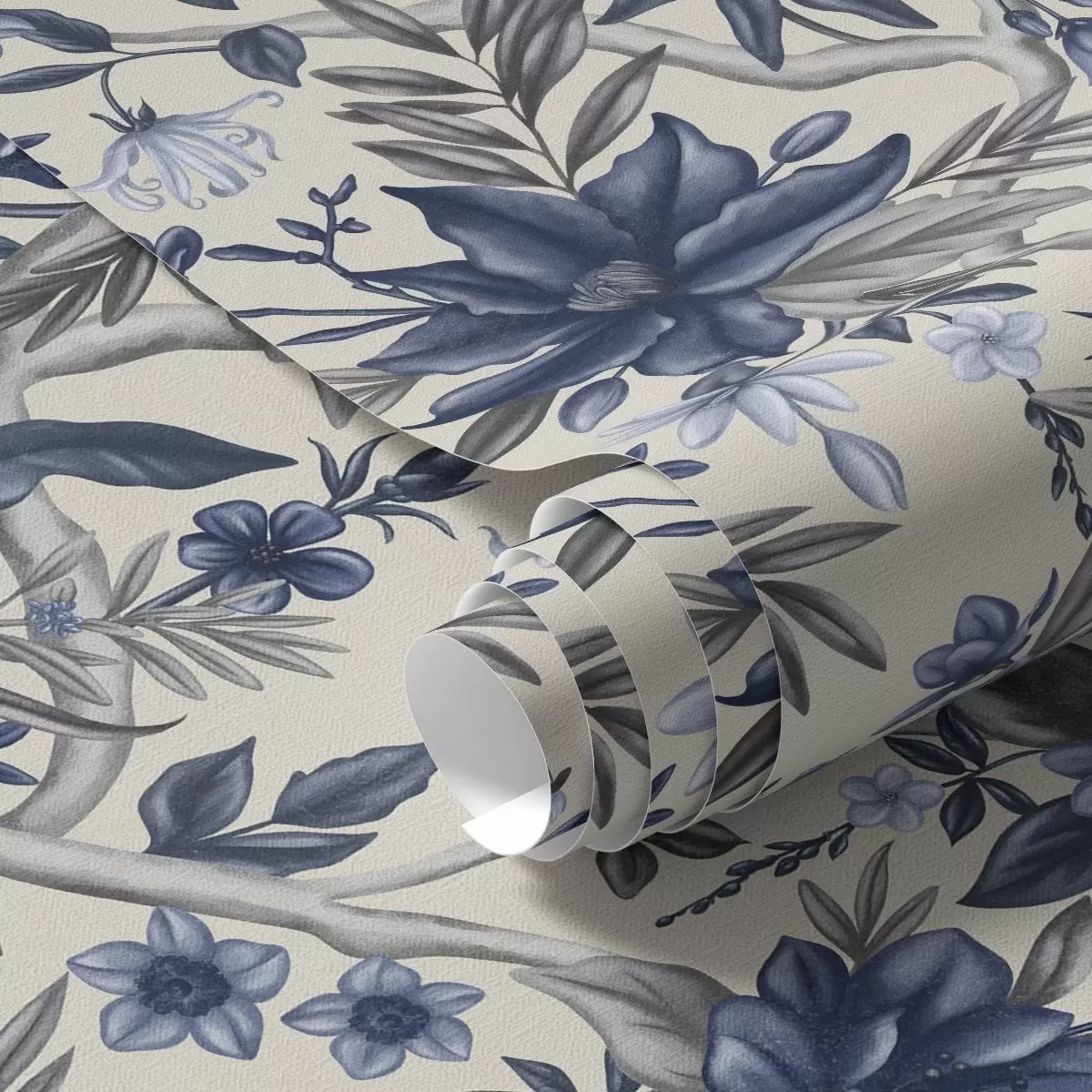 Tapéta Kék és szürke virágok világos háttéren Nr. a00304