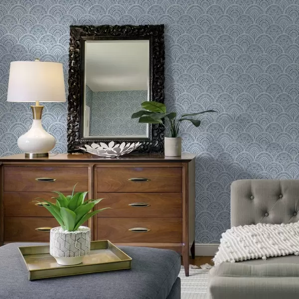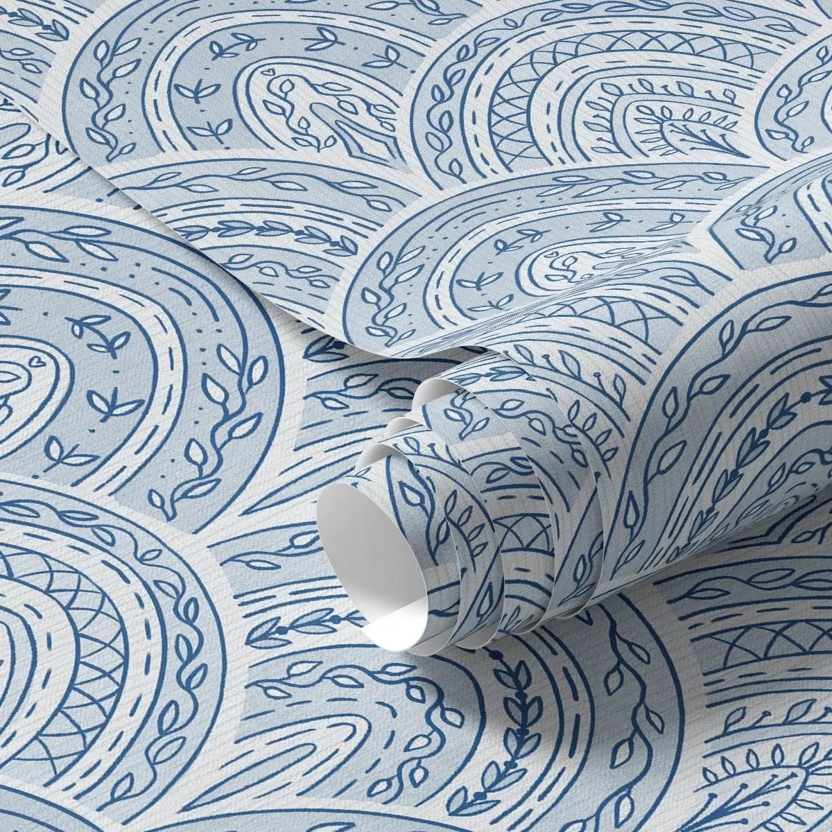 Tapéta Kék díszítés ívekkel és mintákkal Nr. a00332