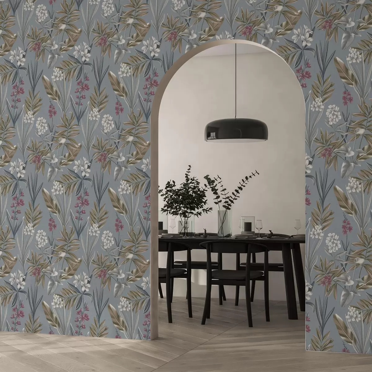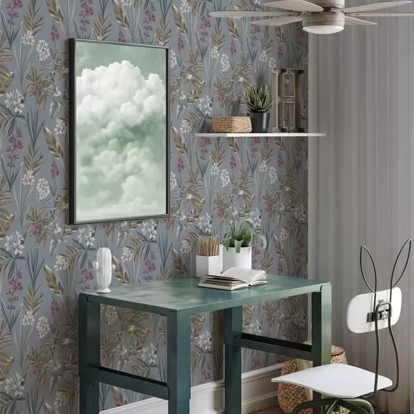 Tapéta Virágos ágak kék-szürke háttéren Nr. a00350