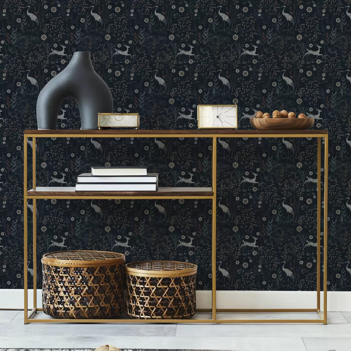 Tapéta Sötét háttér fehér madarakkal és szarvasokkal Nr. a00363