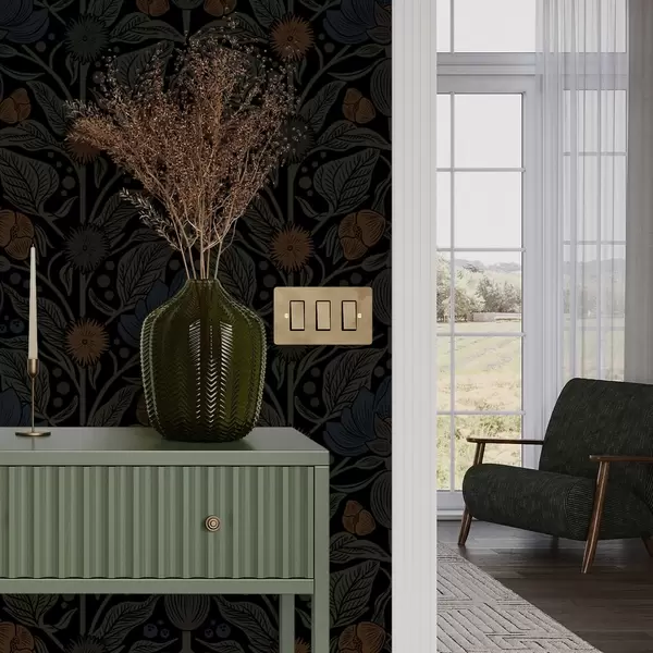 Tapéta Sötét virágos dísz narancssárga ékezetekkel Nr. a00411