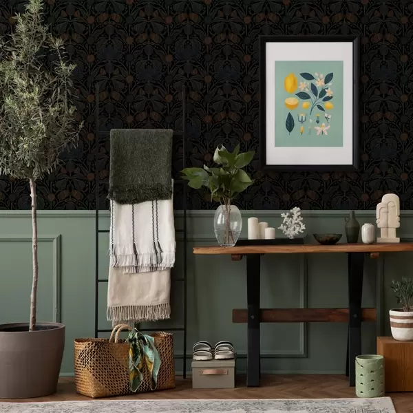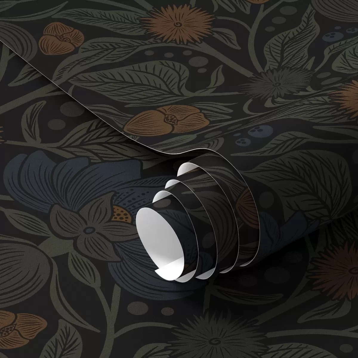 Tapéta Sötét virágos dísz narancssárga ékezetekkel Nr. a00411
