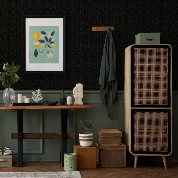Tapéta Sötét díszítés növényekkel klasszikus stílusban Nr. a00412