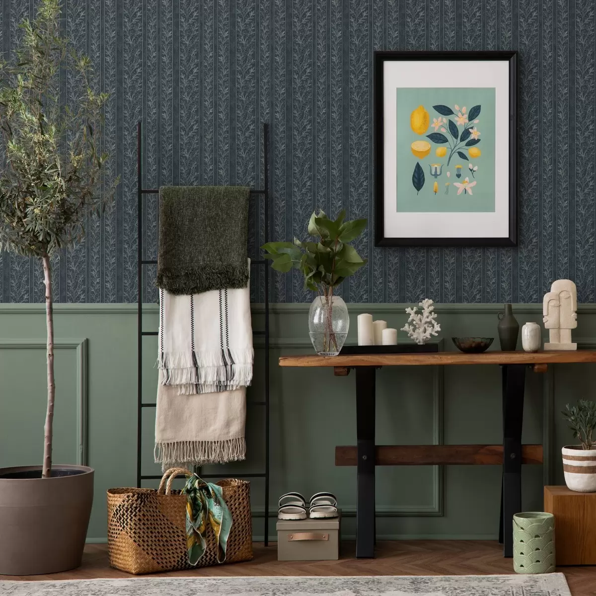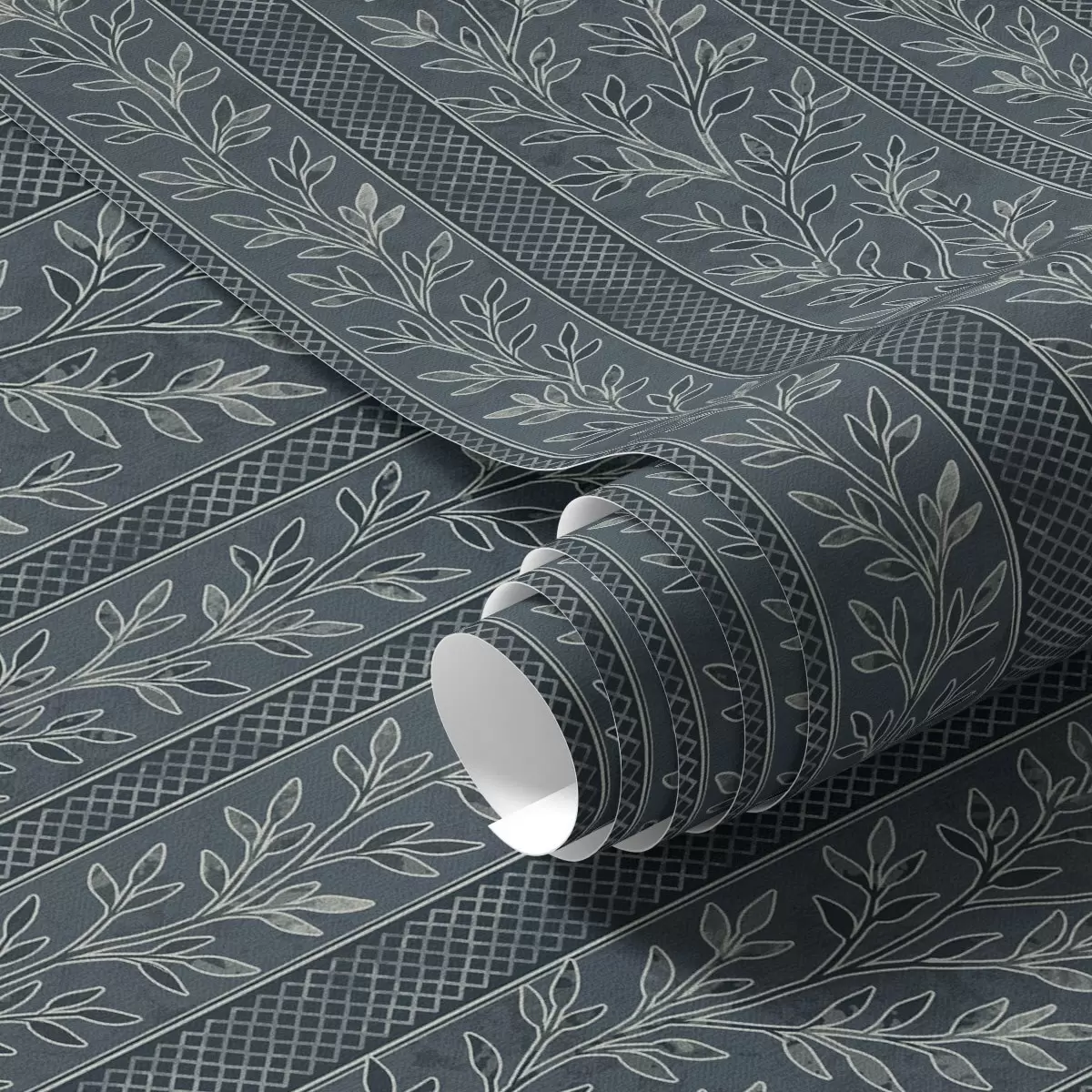 Tapéta Csíkos minta gallyakkal kék háttéren Nr. a00425
