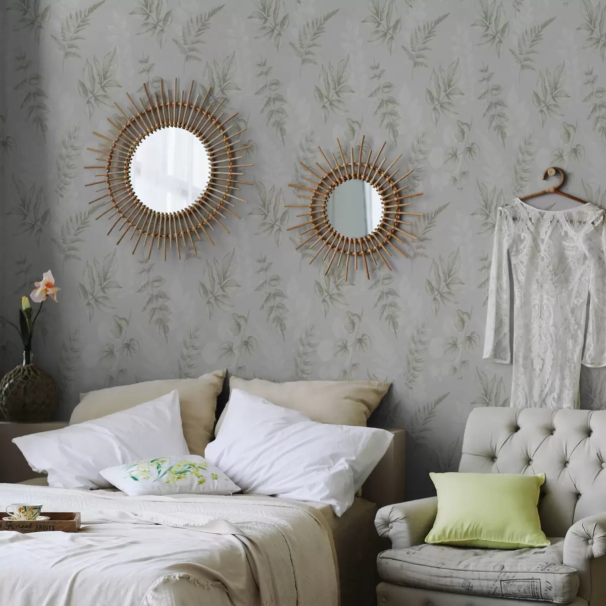Tapéta Könnyű akvarell levelek fröccsenő hatással szürke háttéren Nr. a00446