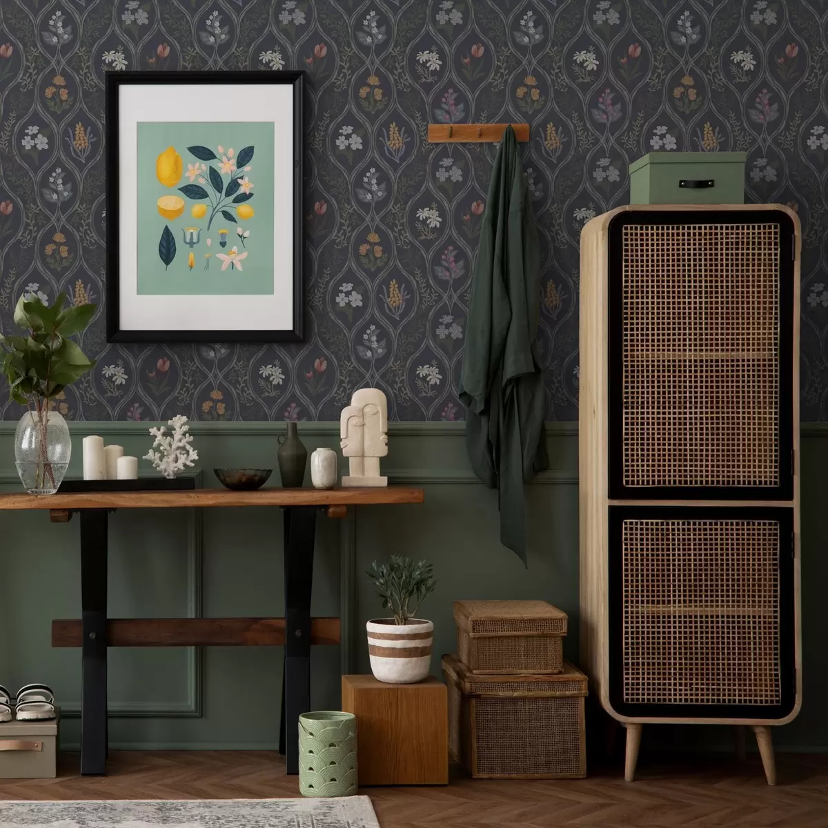 Tapéta Sötét vintage keret színes kerti virágokkal Nr. a00454