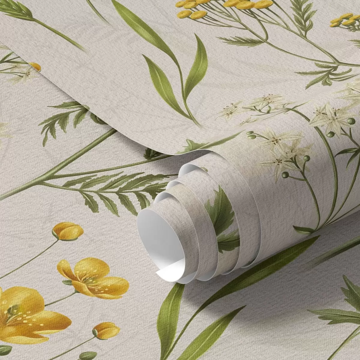 Tapéta Sárga virágok és zöld növényzet bézs háttéren Nr. a00472v2