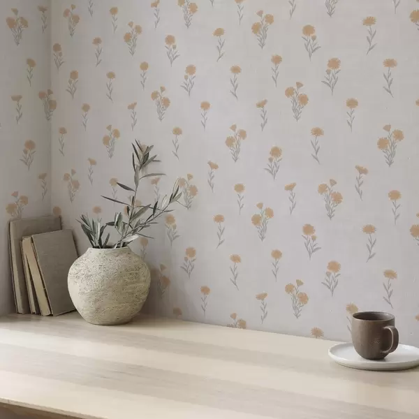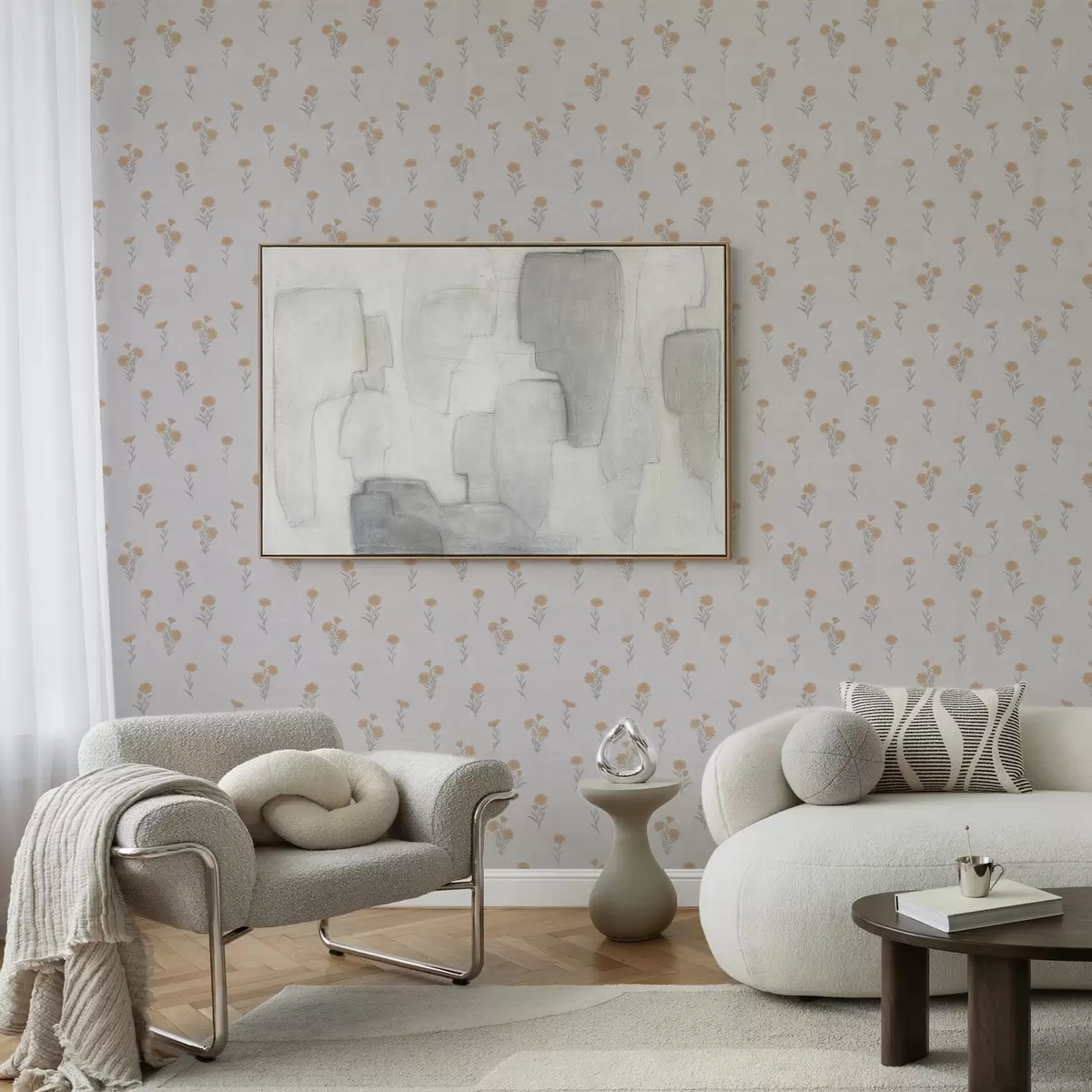 Tapéta Kis narancssárga virágok világosszürke háttéren Nr. a00486