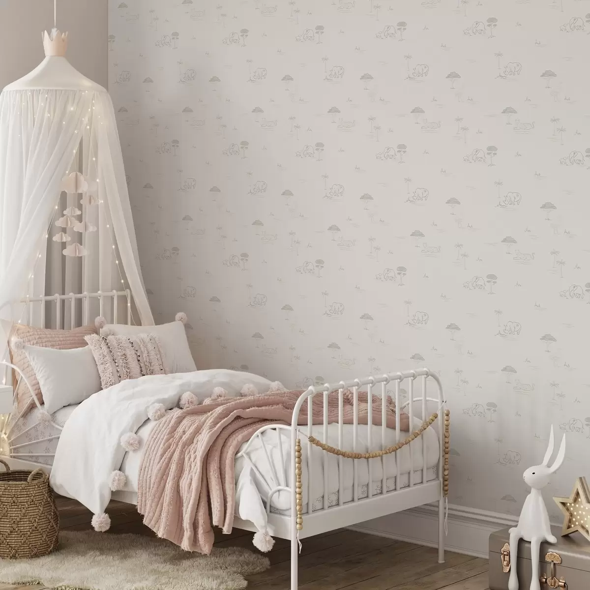 Tapéta Minimalista szafari: elefántok, orrszarvúk, leopárdok és pálmafák Nr. a00492
