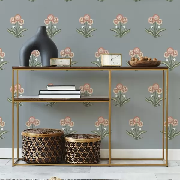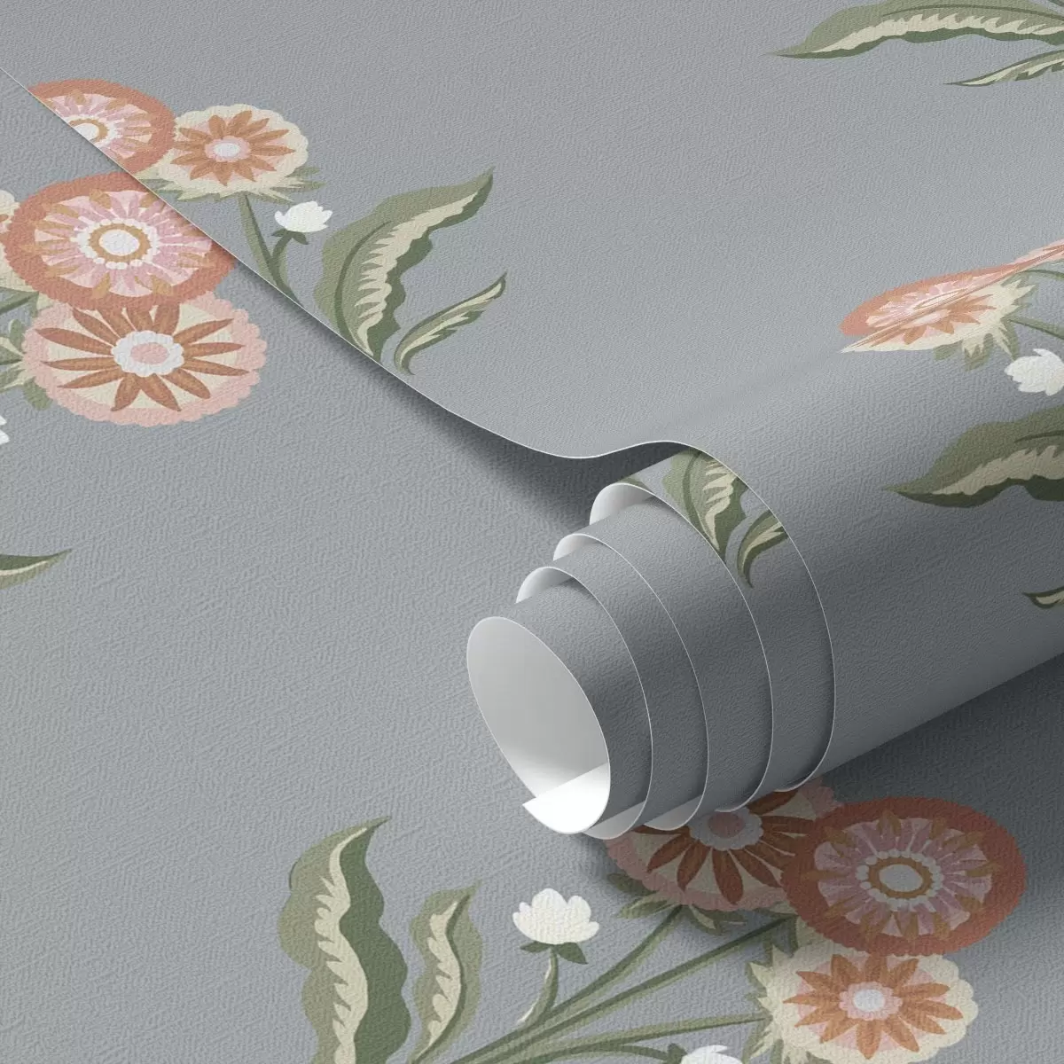 Tapéta Szép virágok szürke-kék háttérrel, meleg színekkel Nr. a00494
