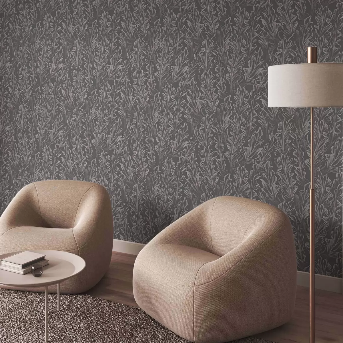 Tapéta Grafit háttér előtt hullámzó leveles minták, nagy kontraszt Nr. a00495v1