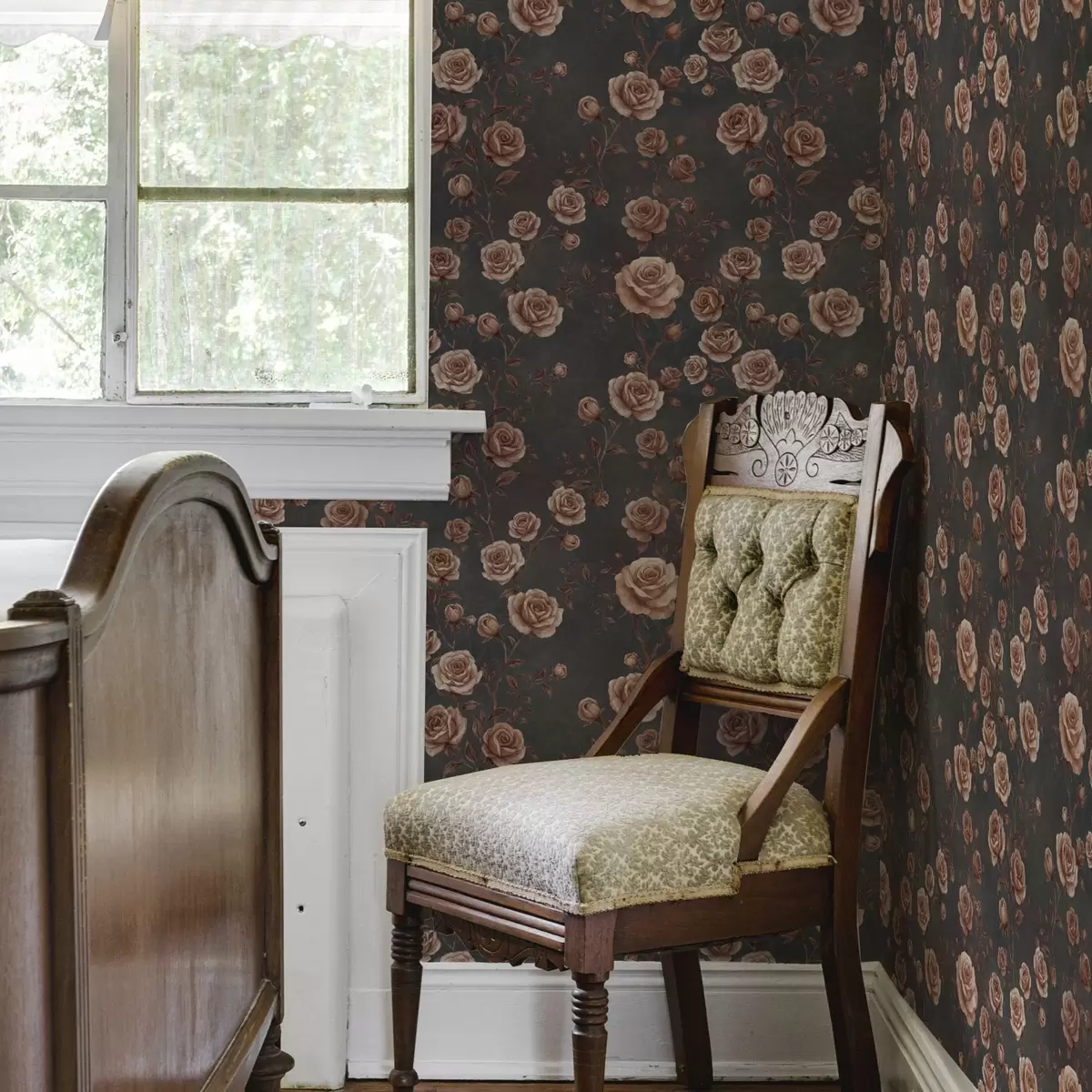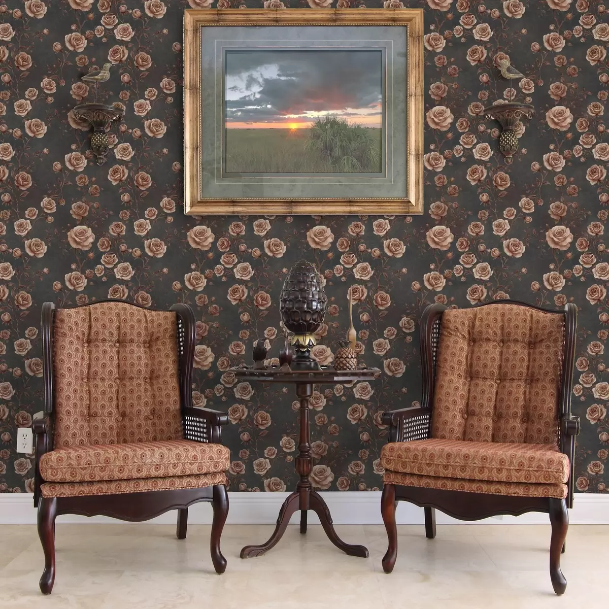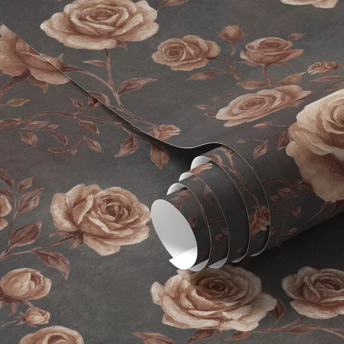 Tapéta Vintage rózsák grafit háttérrel, terrakotta színpalettával Nr. a00497v1
