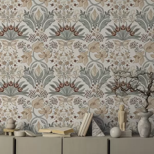 Tapéta Dekoratív liliomok és pillangó krém színű háttérrel Nr. a00500