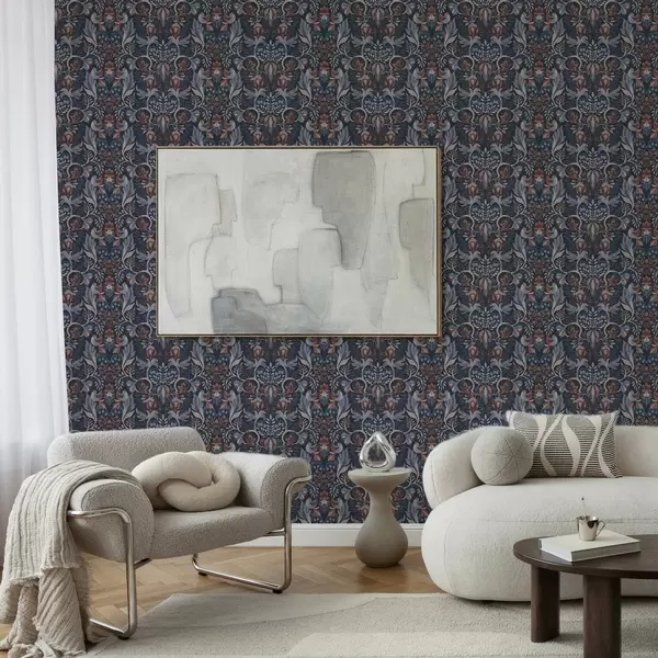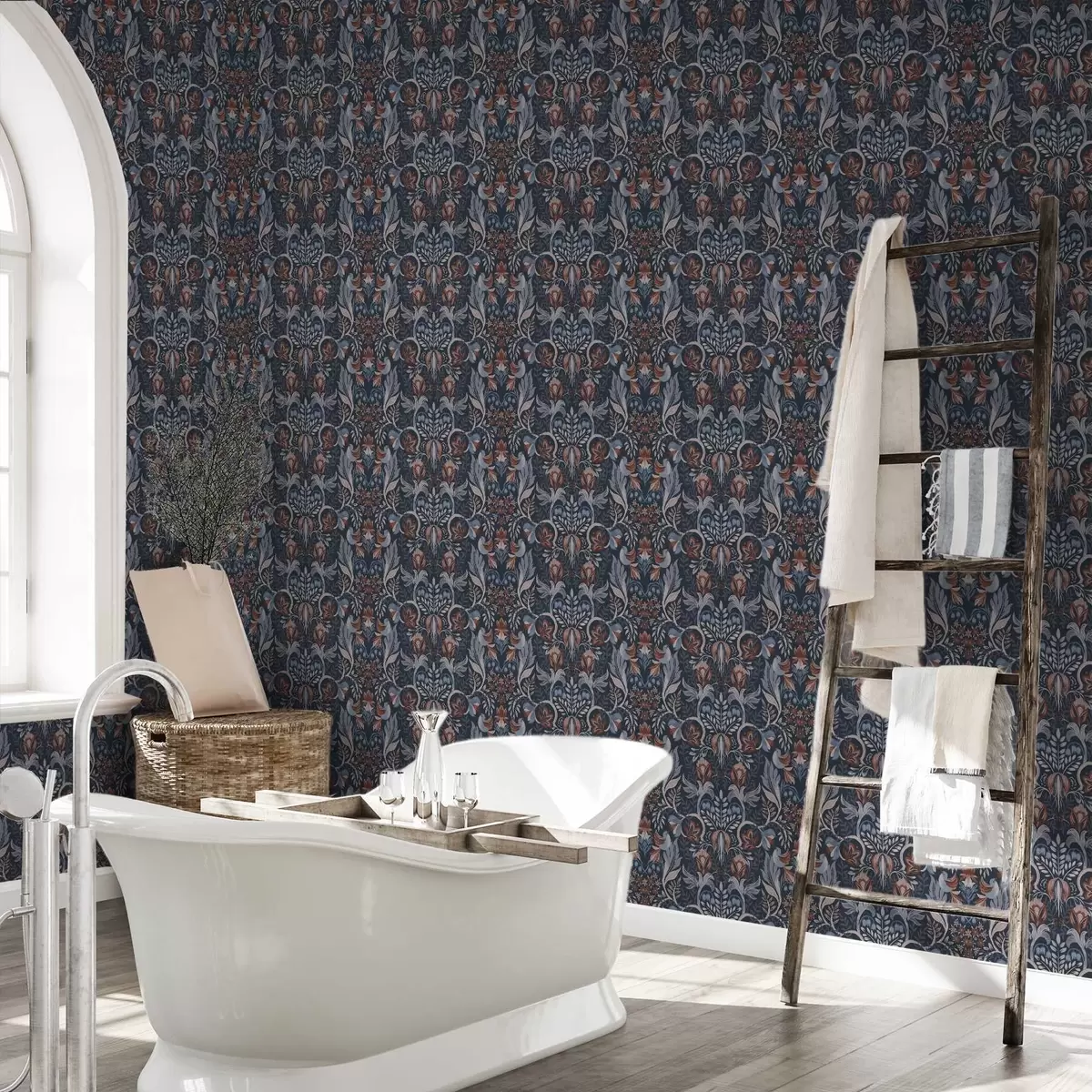Tapéta Népi díszítés madarakkal, mély indigó Nr. a00502v1