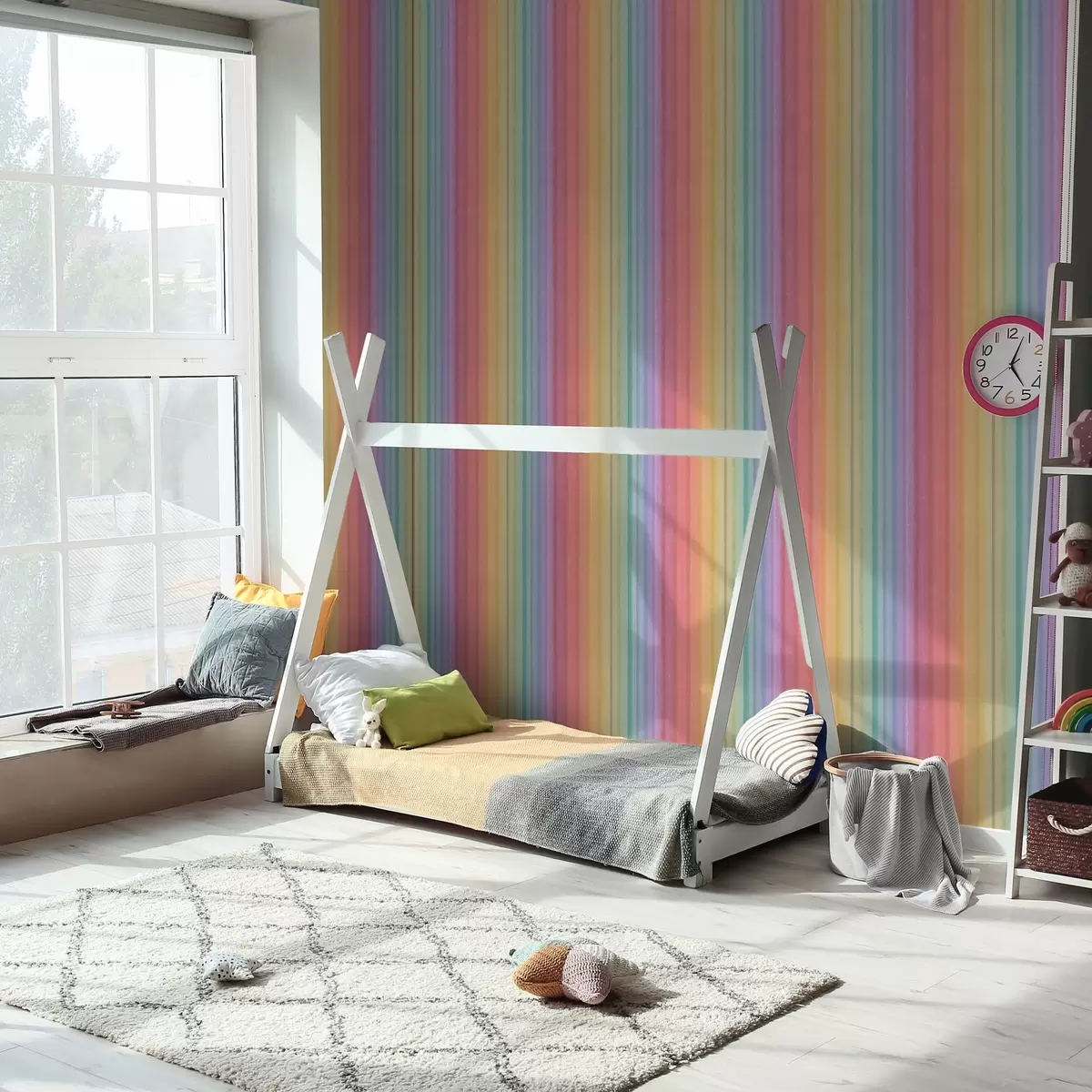 Tapéta Szivárványos csíkok kifejező színű akcentusokkal Nr. a00553