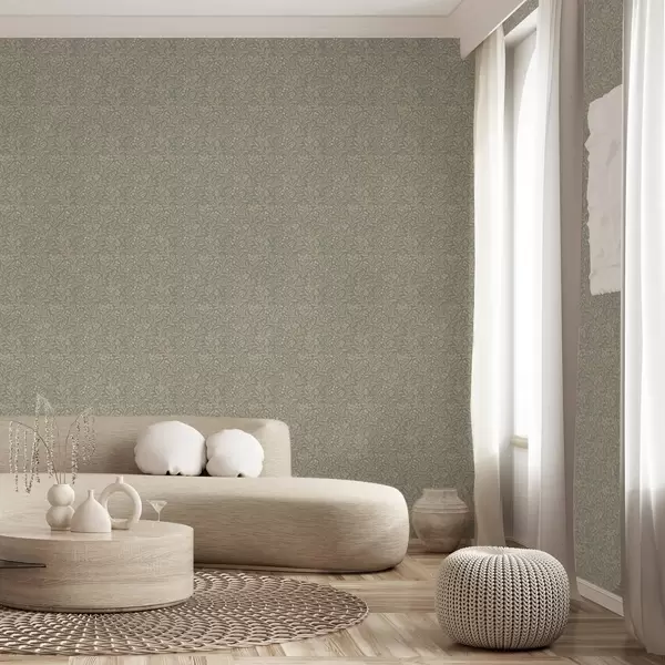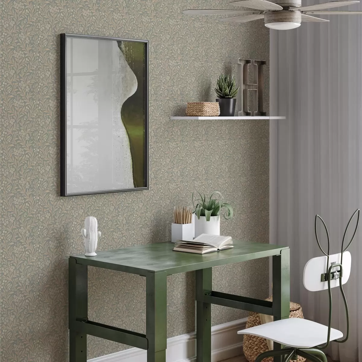 Tapéta Morris stílus: bézs ágak szürkés-zöld háttérrel Nr. a00569