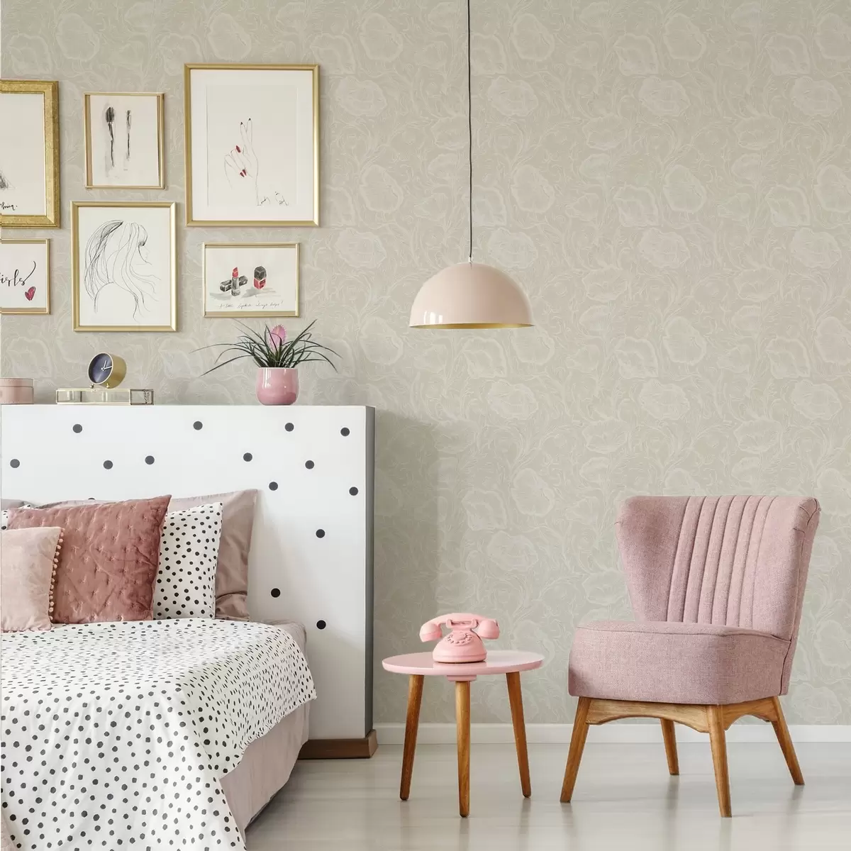 Tapéta Vonalrajzú pipacsok krém színű háttérrel Nr. a00572
