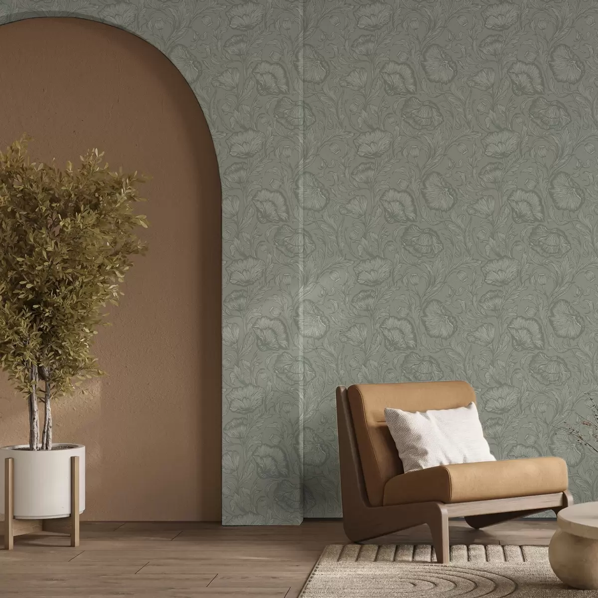 Tapéta Szürke-zöld háttér előtt vonalas rajzolt pipacsok Nr. a00572v1