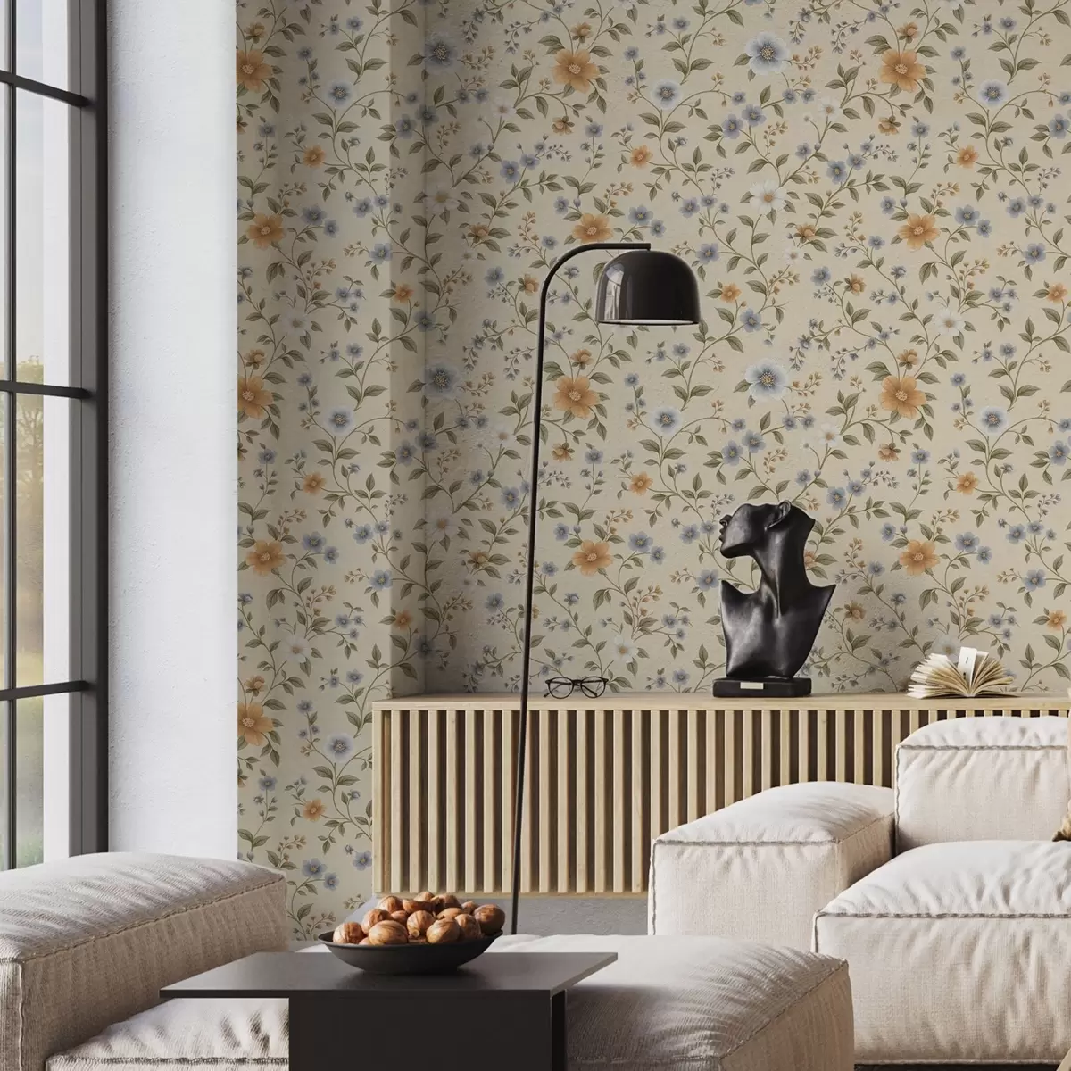 Tapéta Kék és barackvirágos virágos ágak Nr. a00575