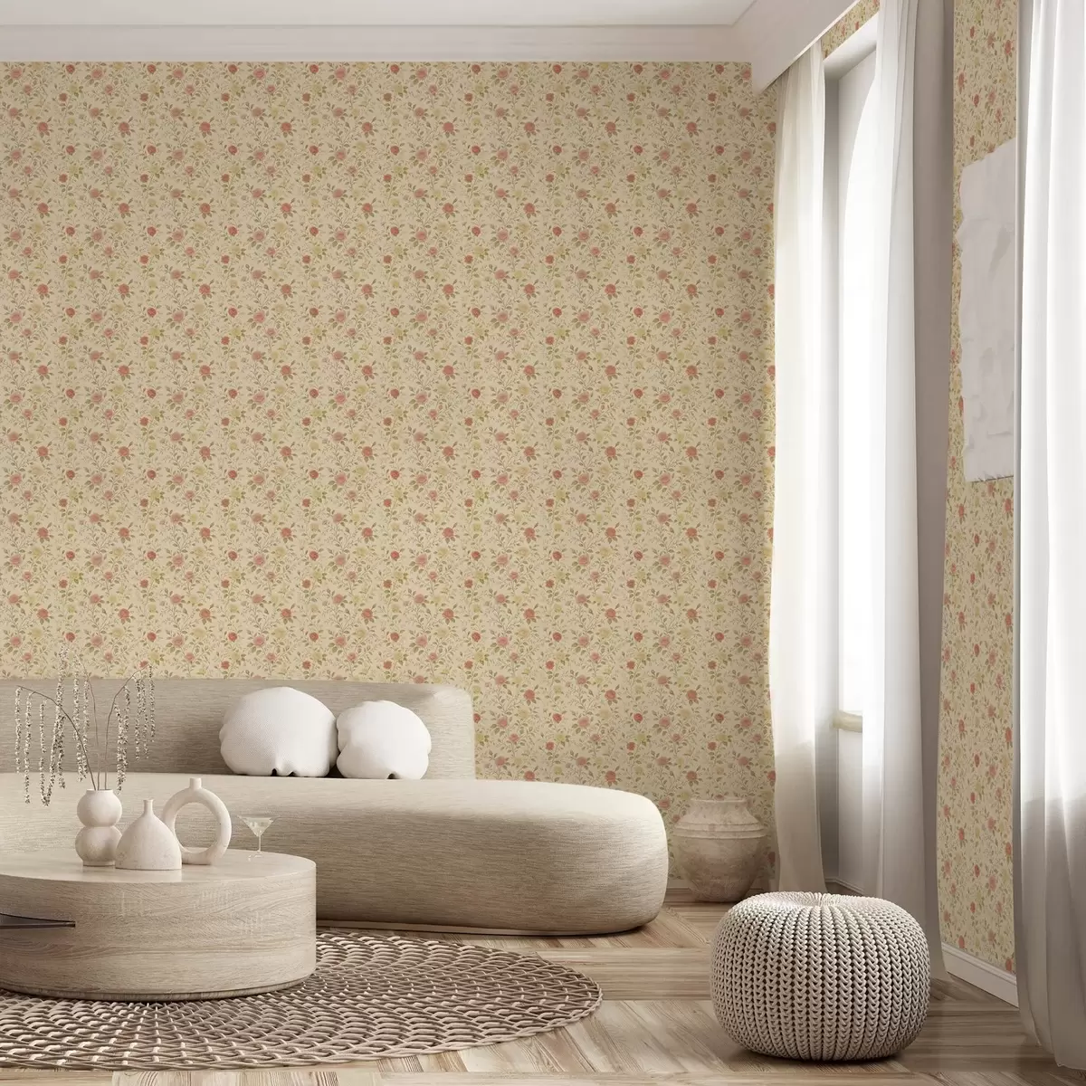 Tapéta Vintage rózsák barack és sárga színben krém háttérrel Nr. a00577
