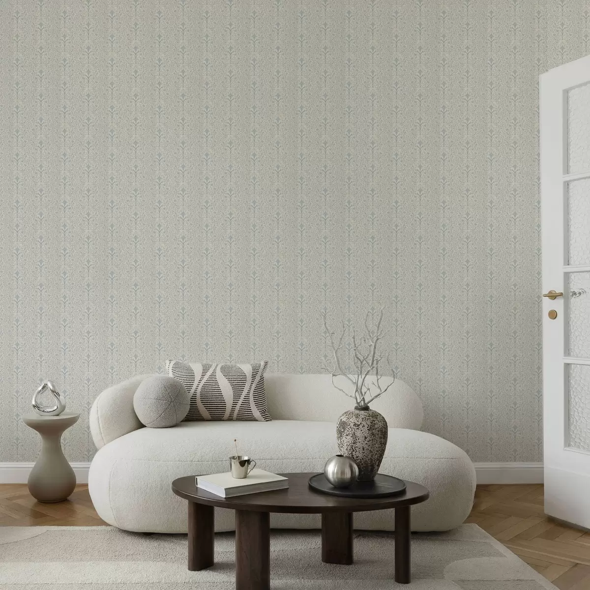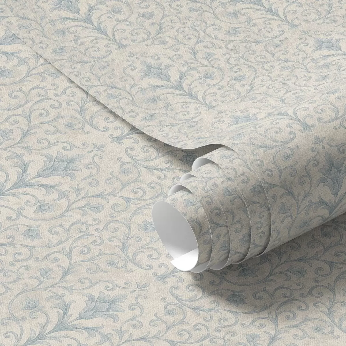 Tapéta Kék damaszt, tekercsekkel, krém színű háttérrel Nr. a00578