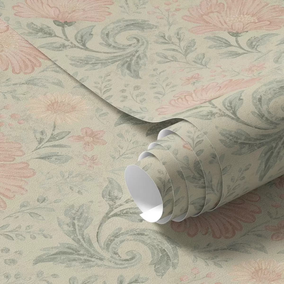 Tapéta Vintage nagy őszibarackvirágok zsályalevelekkel Nr. a00580