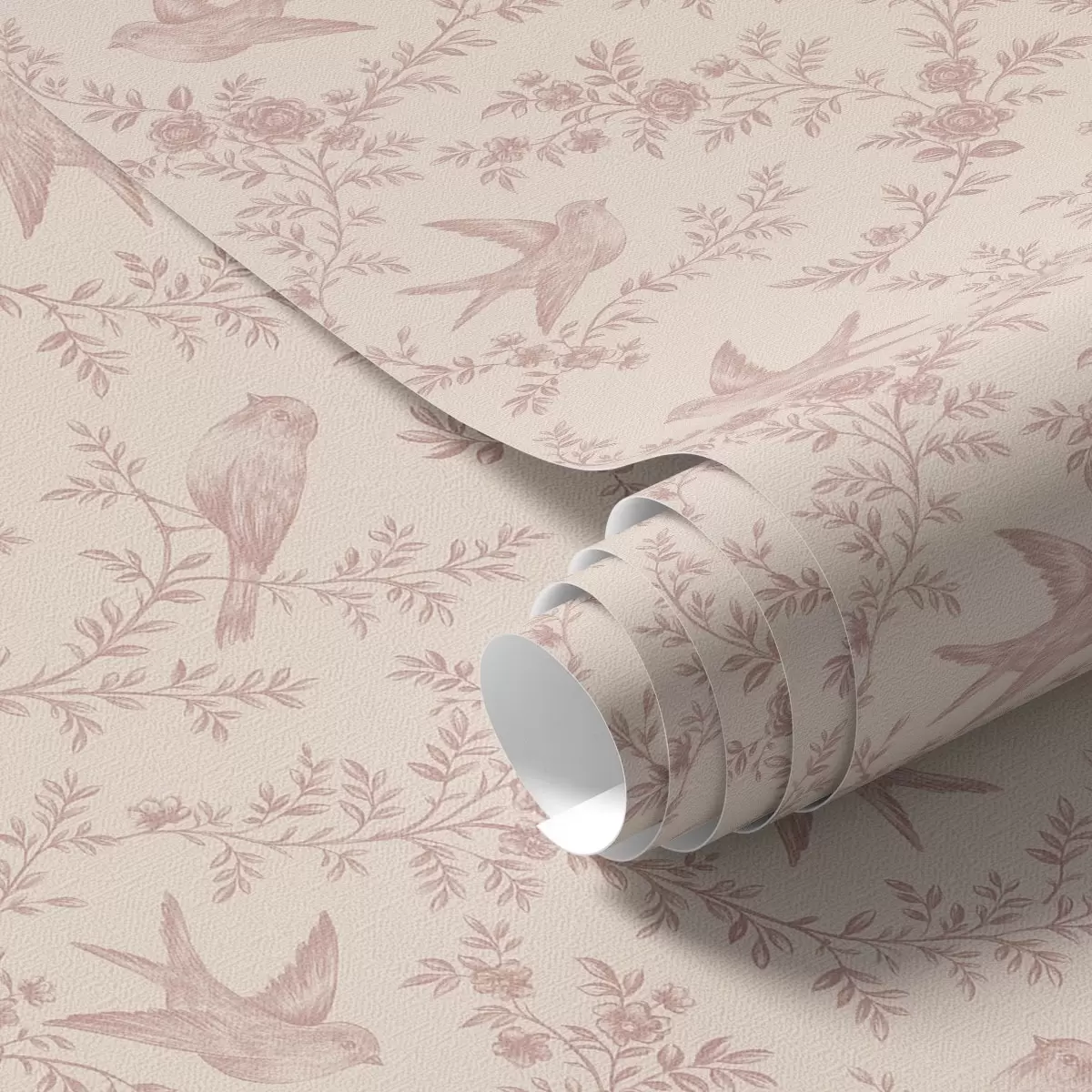 Tapéta Madarak és rózsák, vintage mintázat porrózsaszín alapon Nr. a00587