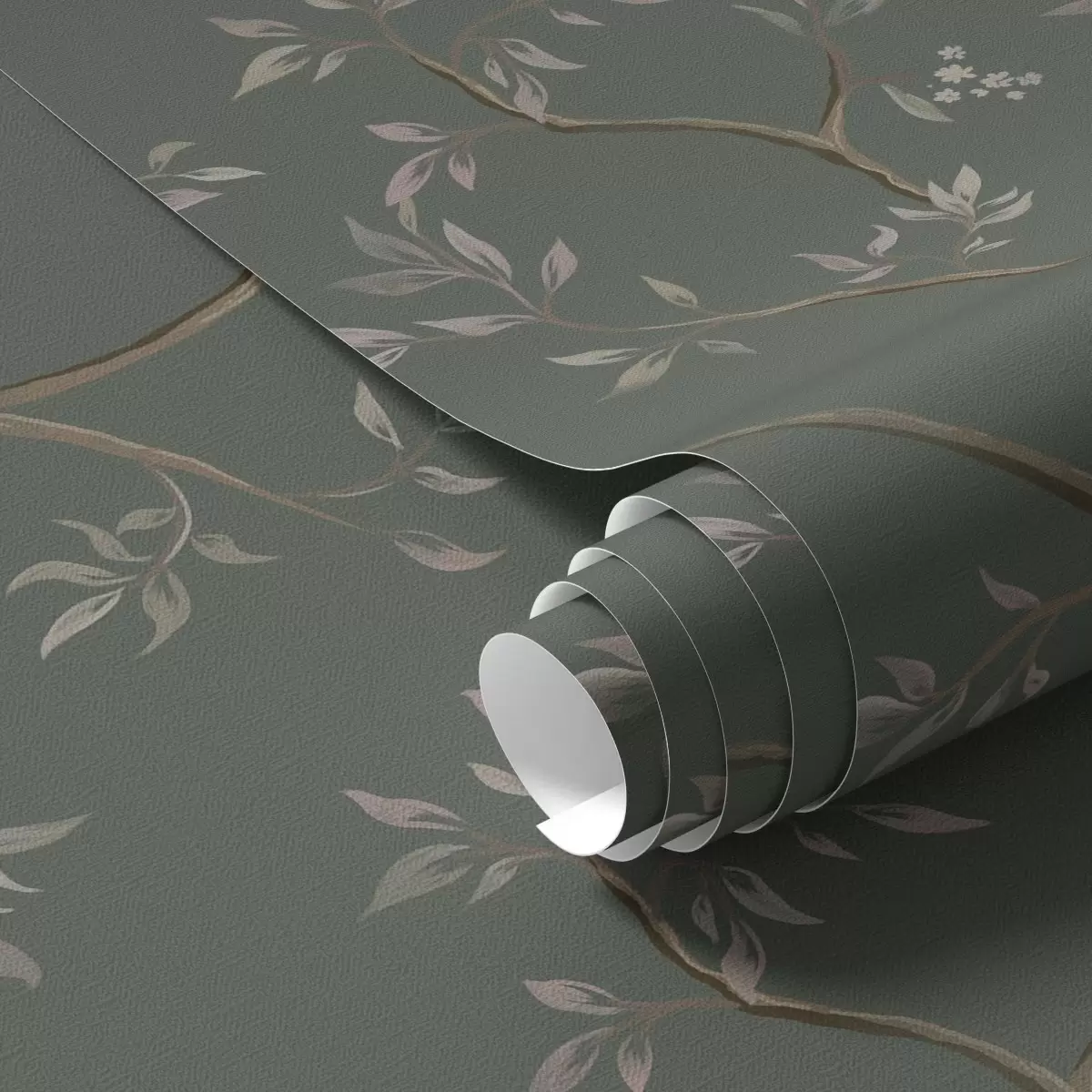 Tapéta Finom leveles ágak sötétzöld háttér előtt Nr. a00597