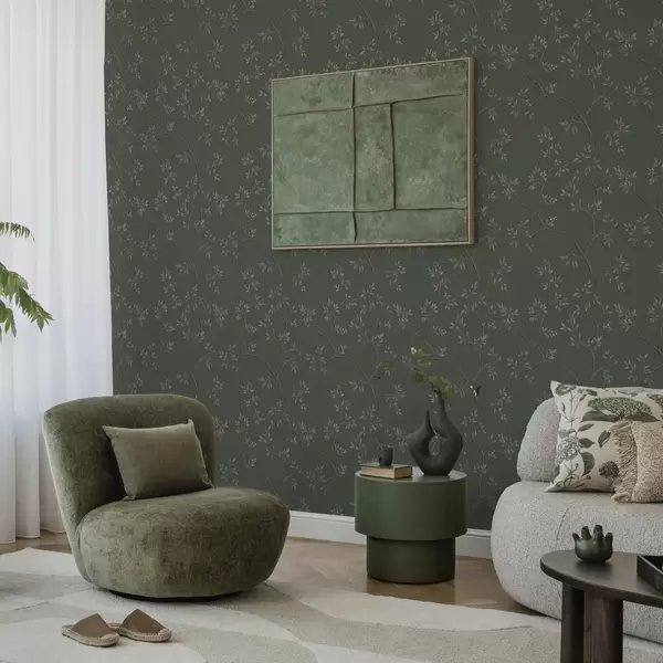 Tapéta Finom leveles ágak sötétzöld háttér előtt Nr. a00597