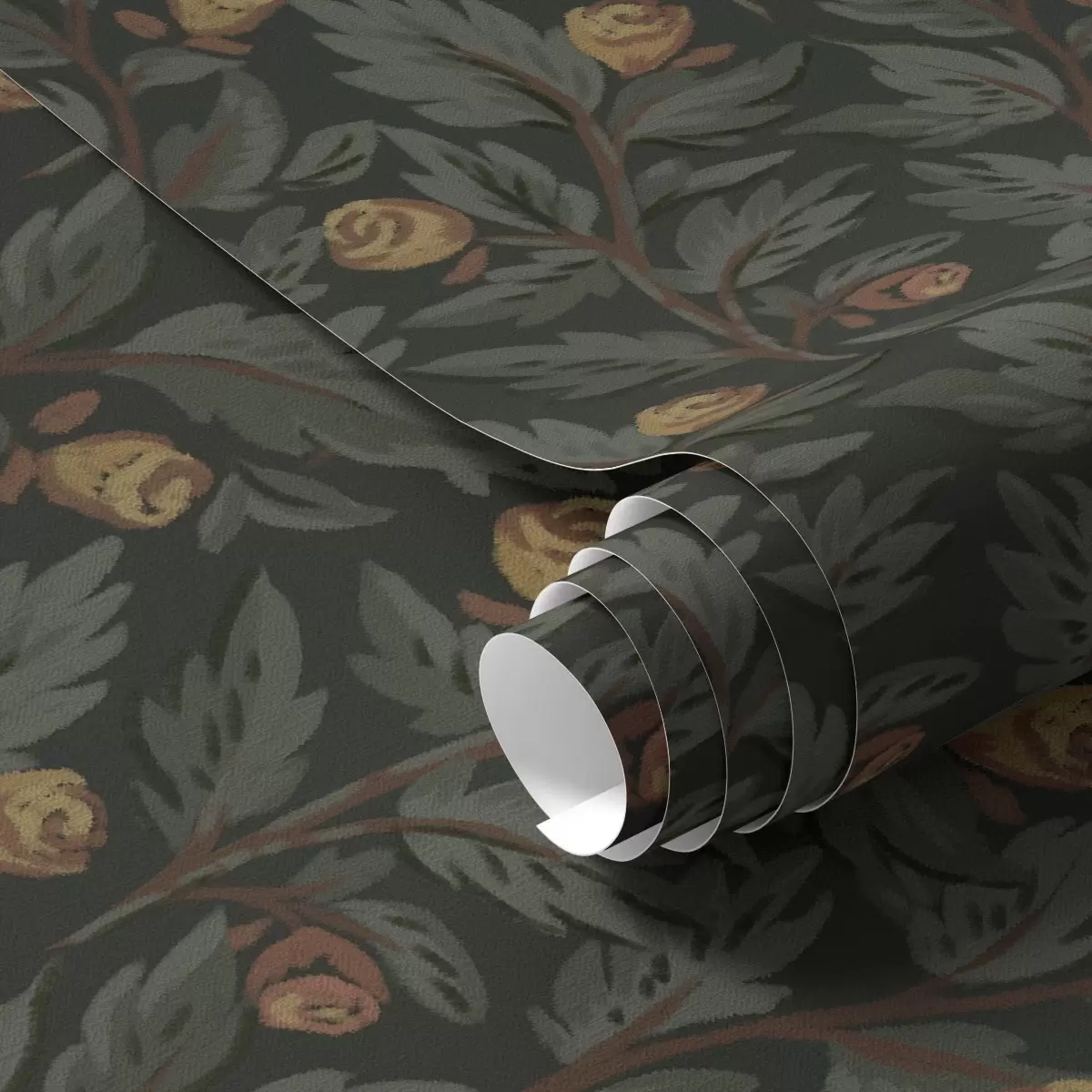 Tapéta Sötét virágmintás, sárga rügyekkel és levelekkel Nr. a00598