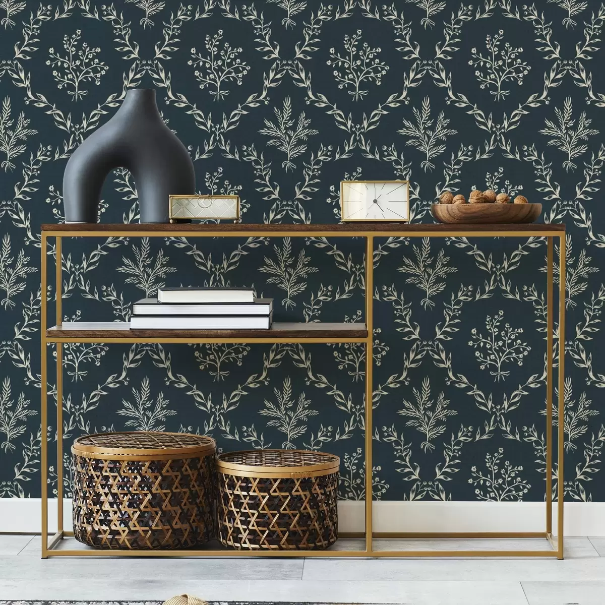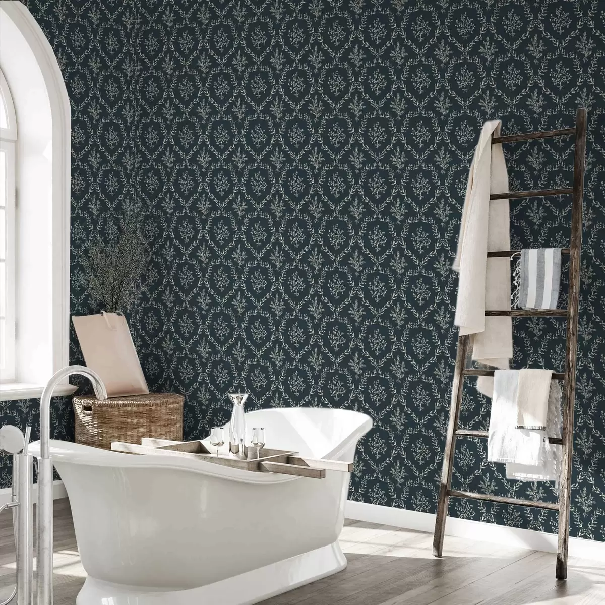 Tapéta Fehér gyógynövény- és virágkoszorúk sötétzöld alapon Nr. a00599v2