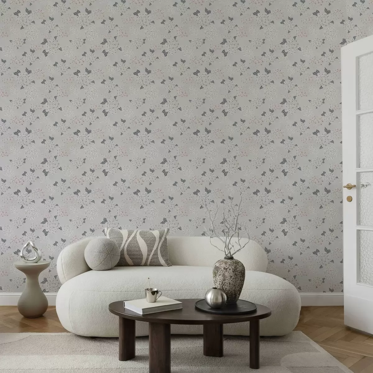 Tapéta Légies virágok világos háttér előtt, lágy rózsaszín-szürke árnyalatokban Nr. a00600