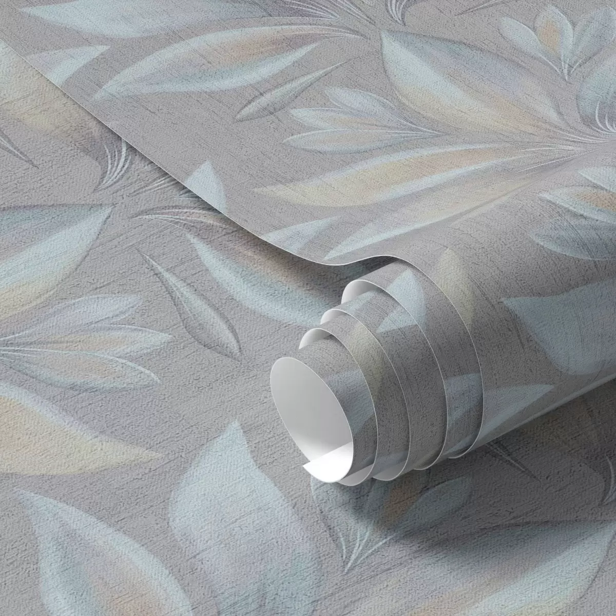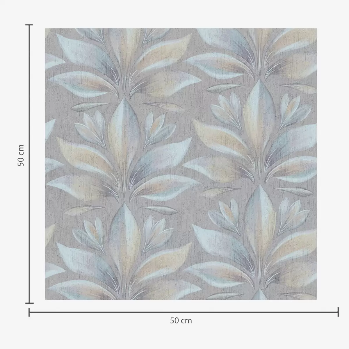 Tapéta Nagy stilizált levelek kék-homok színpalettán szürke alapon Nr. a00601