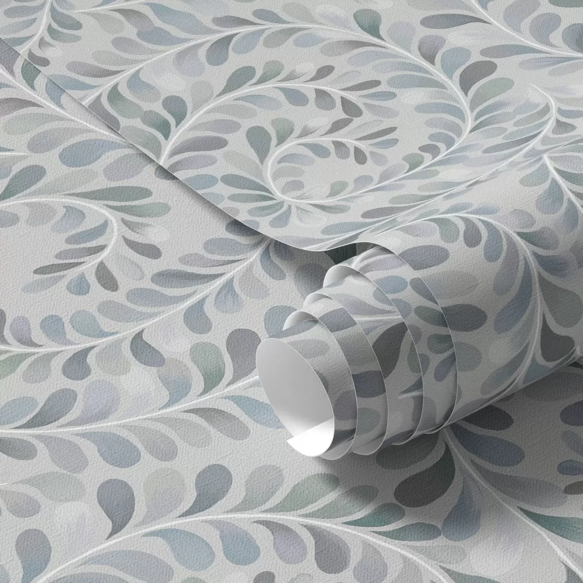 Tapéta Spirál alakú levelek kék-szürke-zöld színpalettában Nr. a00602