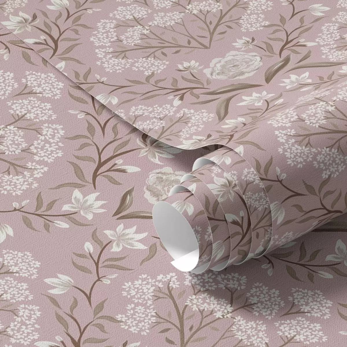 Tapéta Rózsaszín damaszt: pünkösdi rózsák, hóvirágok és csipkés fürtök Nr. a00603