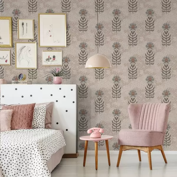 Tapéta Stilizált virágok és magok meleg bézs színű alapon Nr. a00604