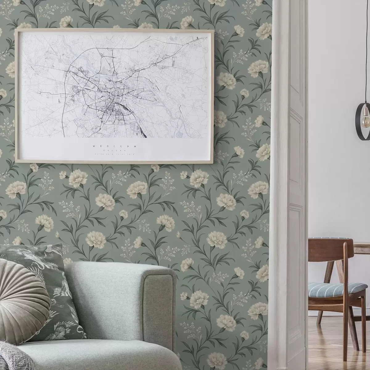 Tapéta Poros szegfű szürke-zöldes háttérrel, kifinomult nyomtatás Nr. a00610