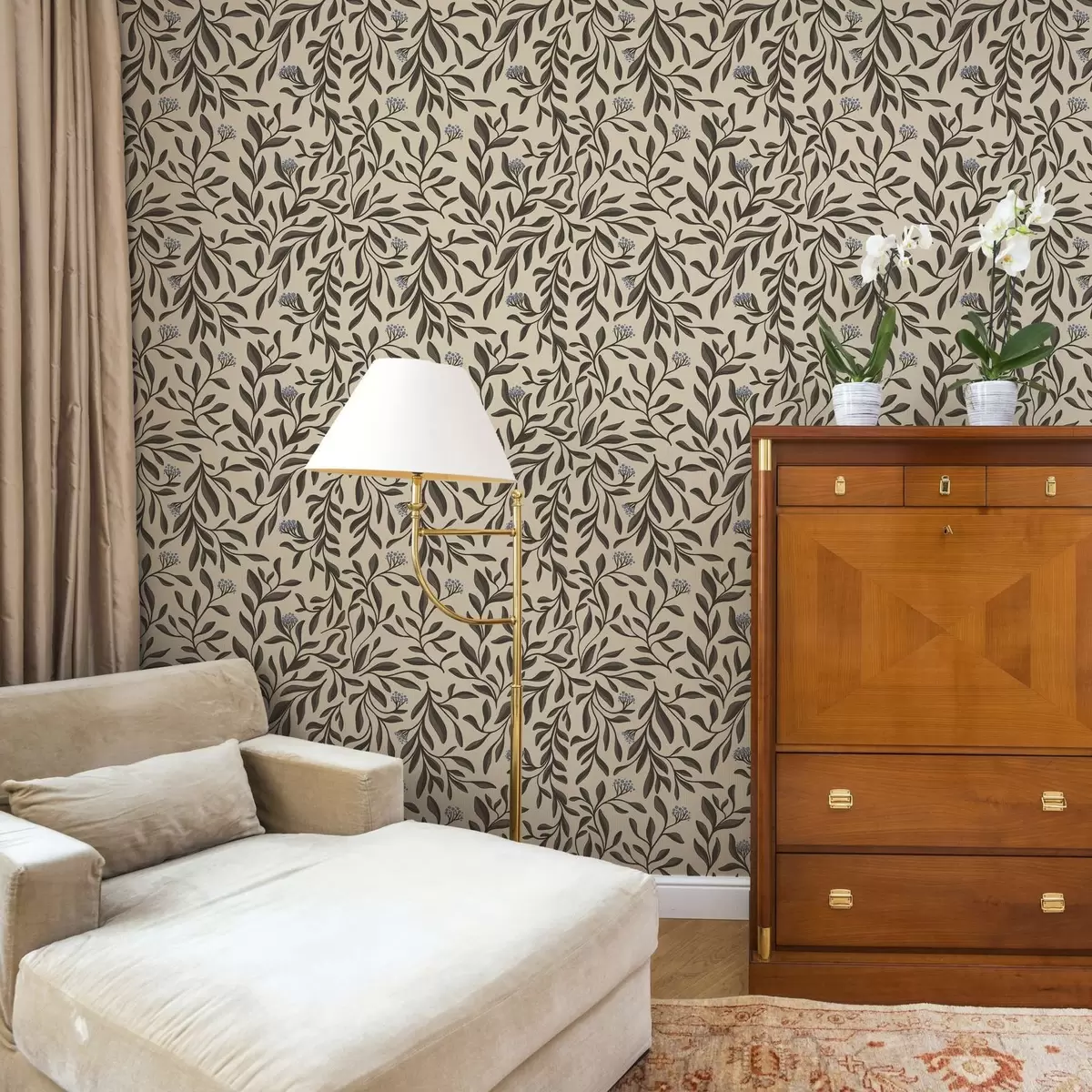 Tapéta Csokoládé ágak kék bogyókkal meleg háttér előtt Nr. a00615