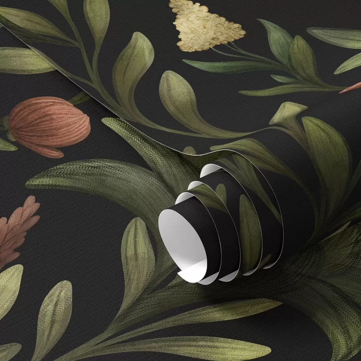 Tapéta Magas fű és virágok fekete, részletgazdag nyomtatáson Nr. a00620
